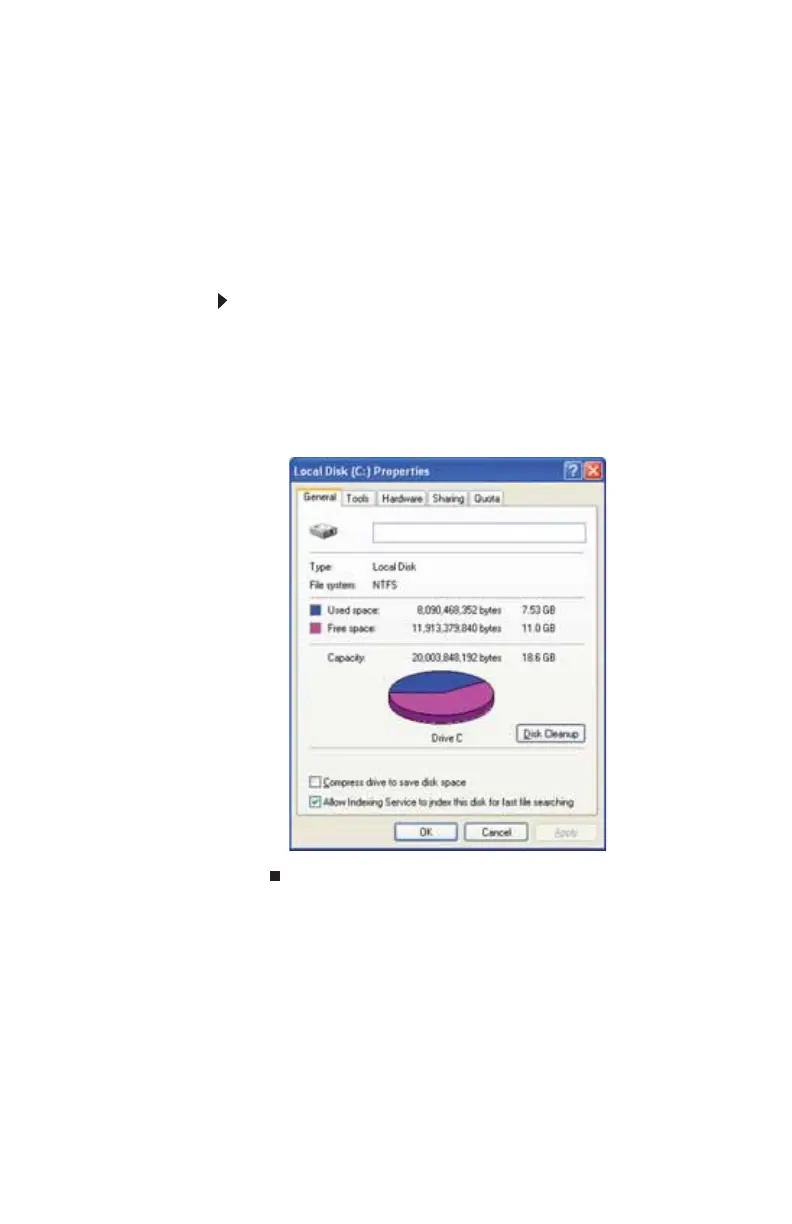file space, then click Properties. Drive space information