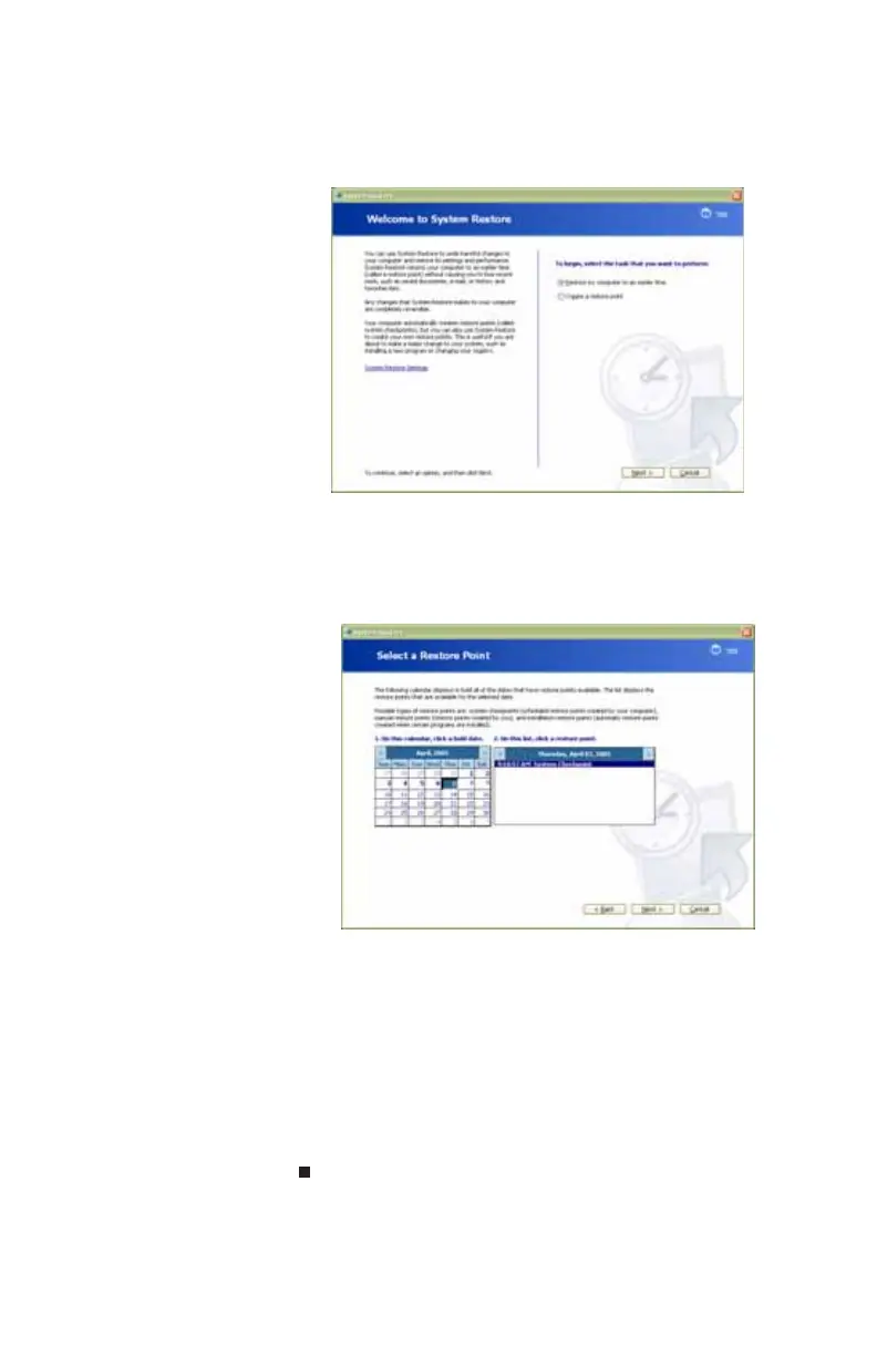 Restore. The Welcome to System Restore dialog box