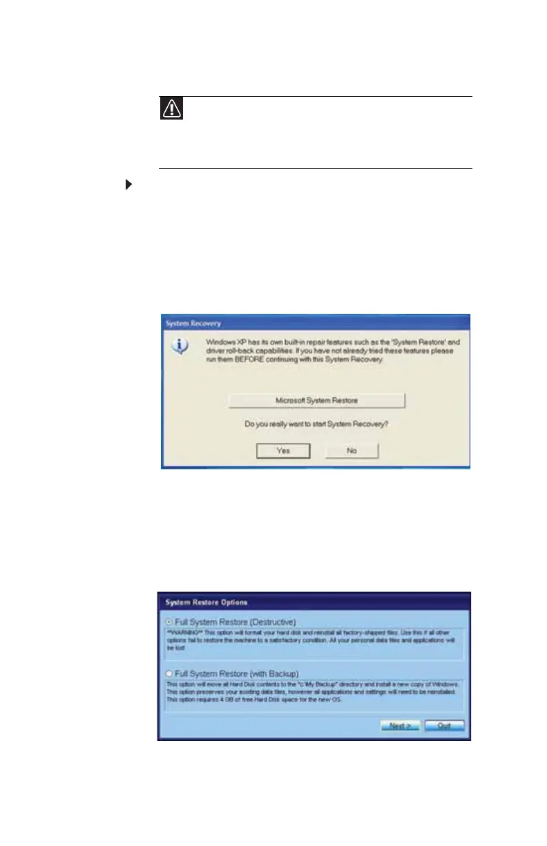 prompted. The System Recovery program starts.