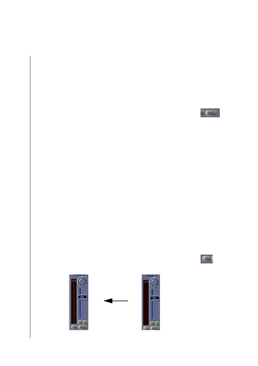 The REC button arms a track for recording. As soon as the track