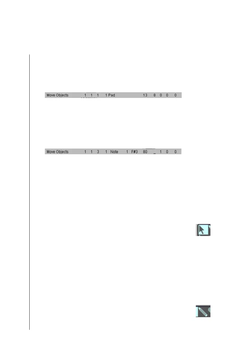 arrange object) position, arrange object name, track number,