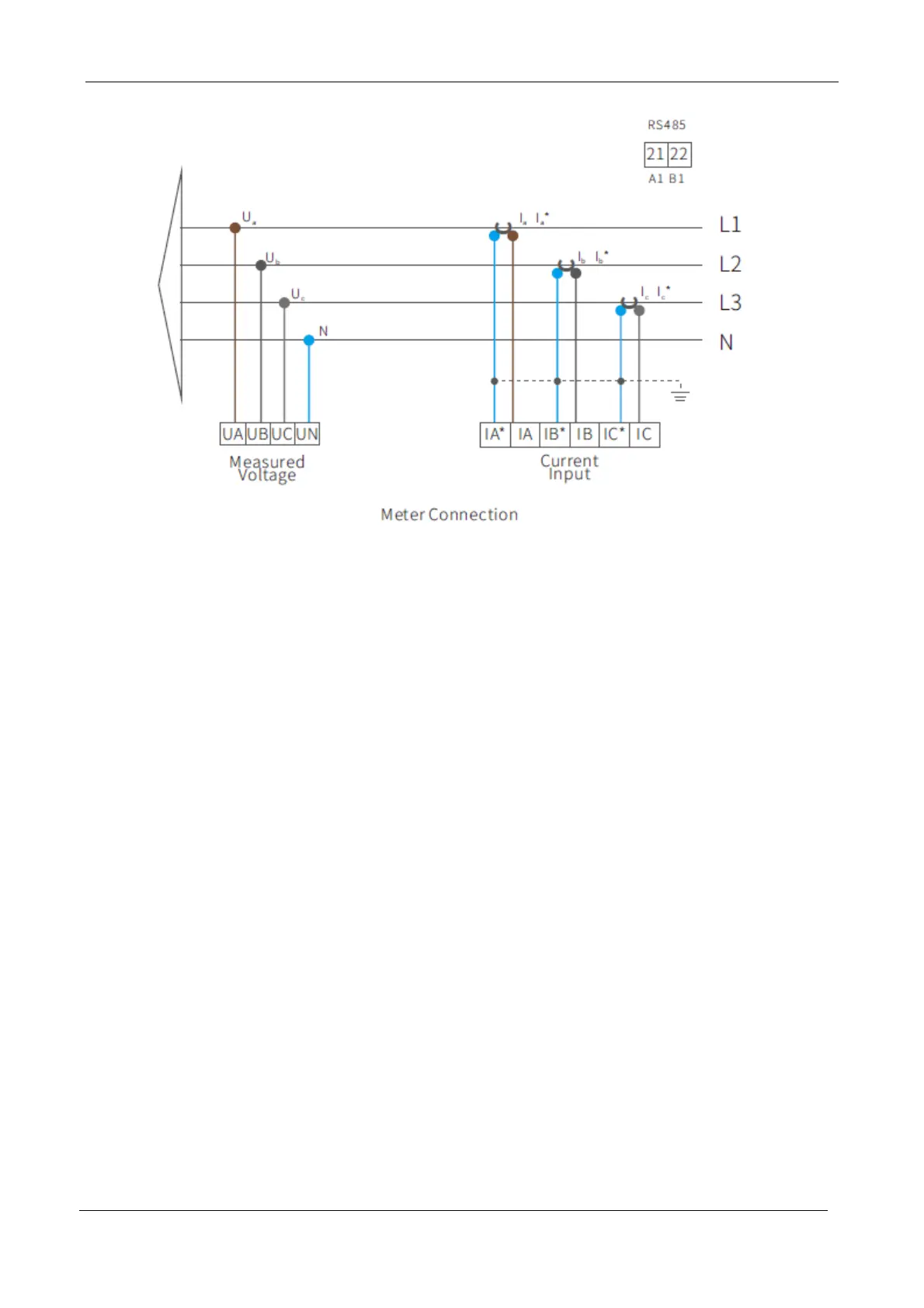 3. The black wire of the Phase A CT sensor is connected to the terminal Ia at the bottom of