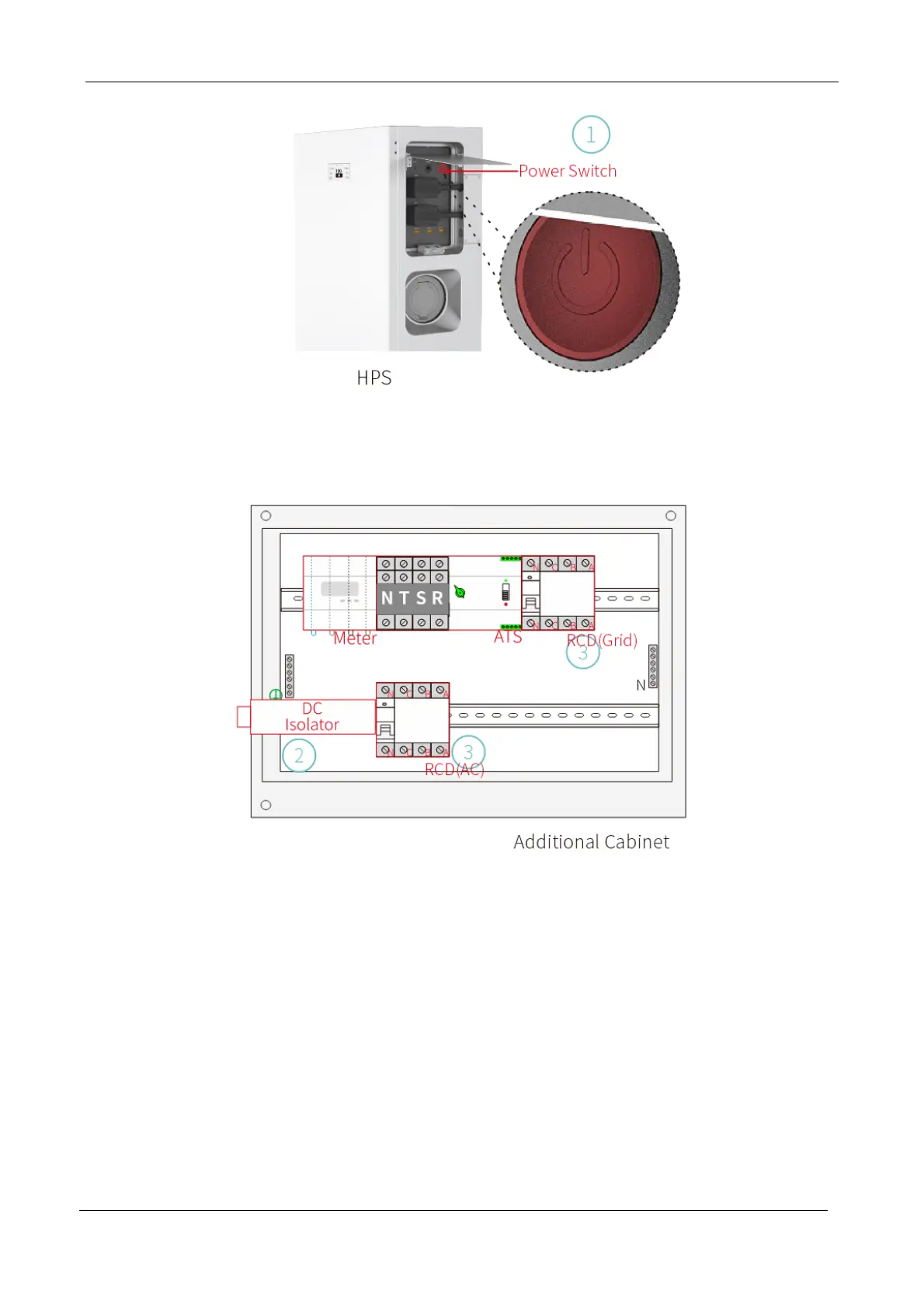 Switch the RCD (Grid, AC) circuit breaker in the Additional Cabinet to the OFF position.