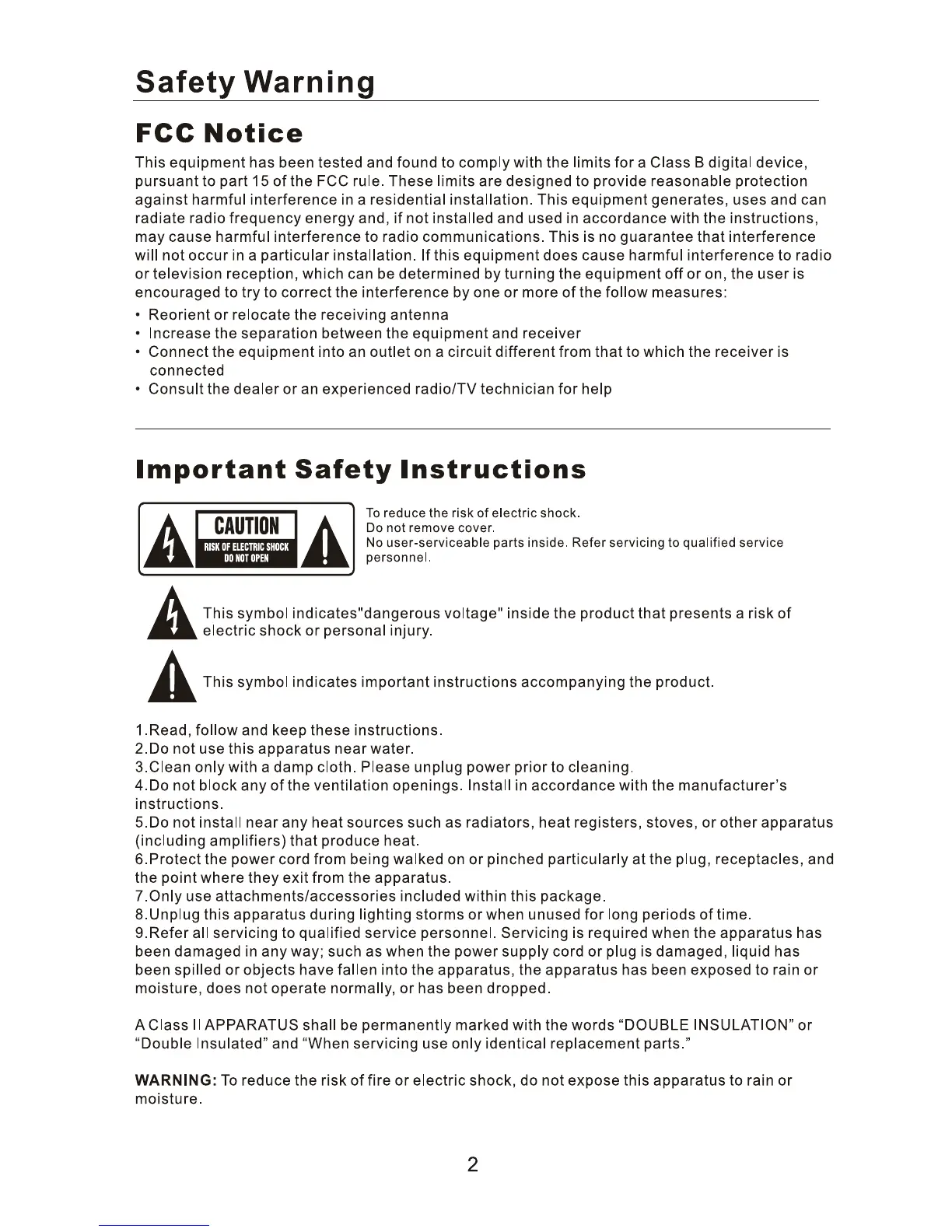 Ematic AT103B - Safety Warnings; FCC Notice; Important Safety Instructions
