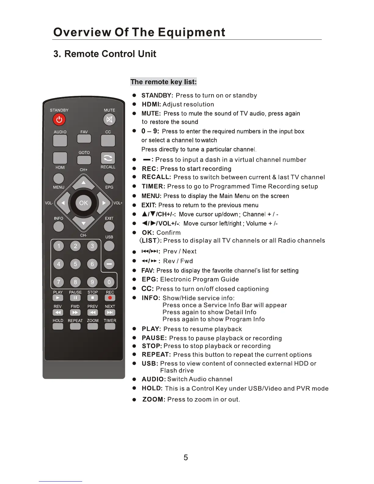 Ematic AT103B - Remote Control Unit; Remote Control Functions