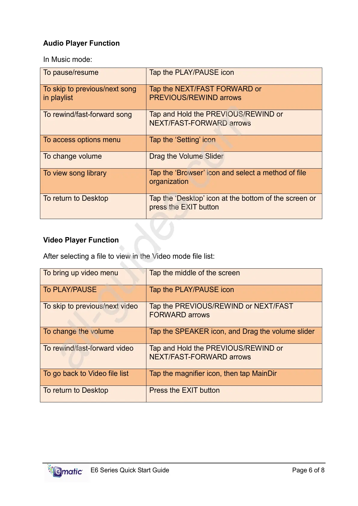 To bring up video menu Tap the middle of the screen