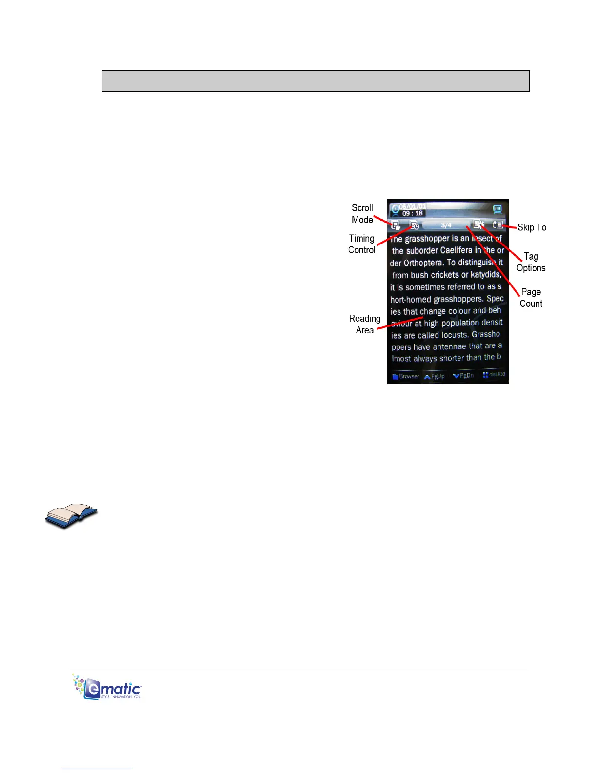 • Tap Browser to go back to the e-book file menu.