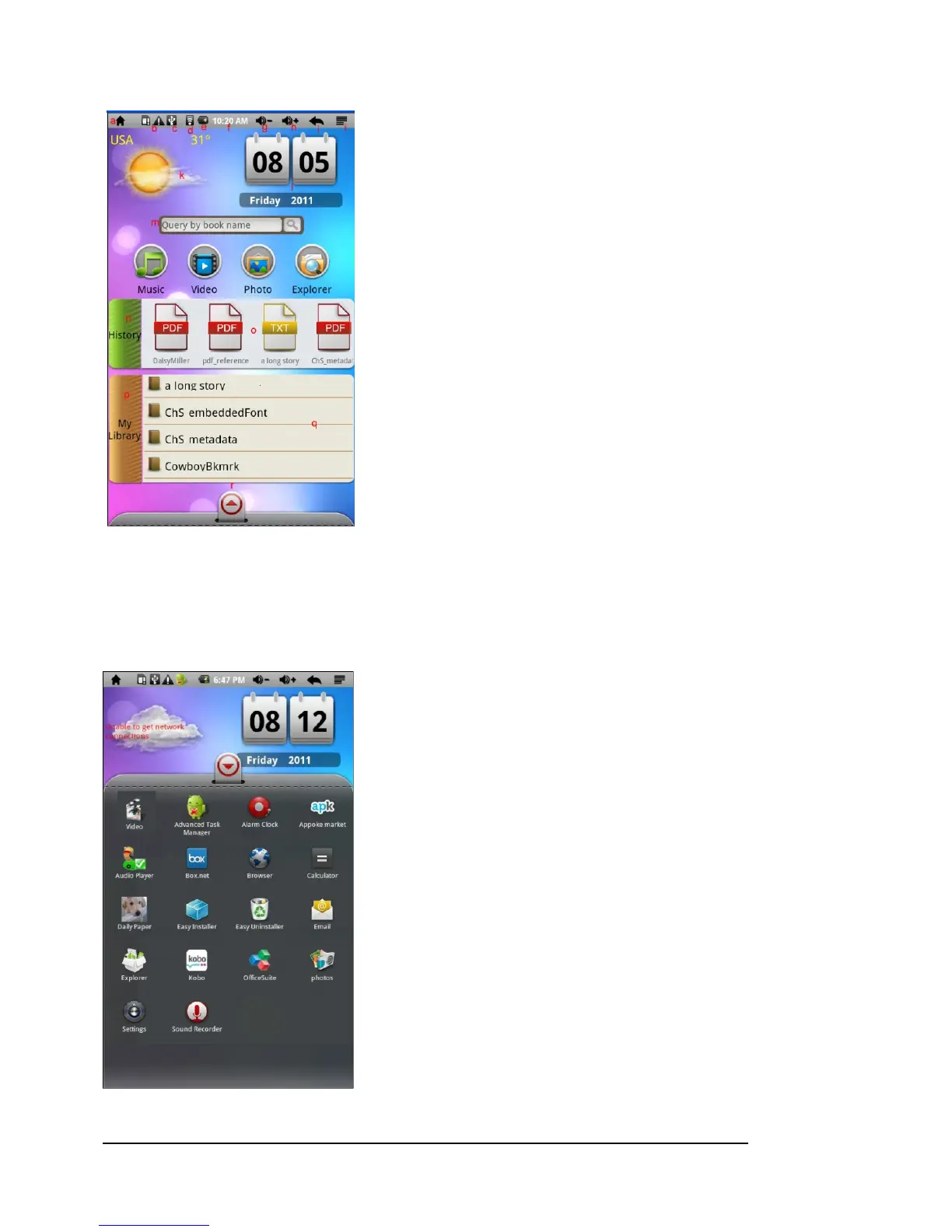 i. Return: Go back to the previous screen or directory