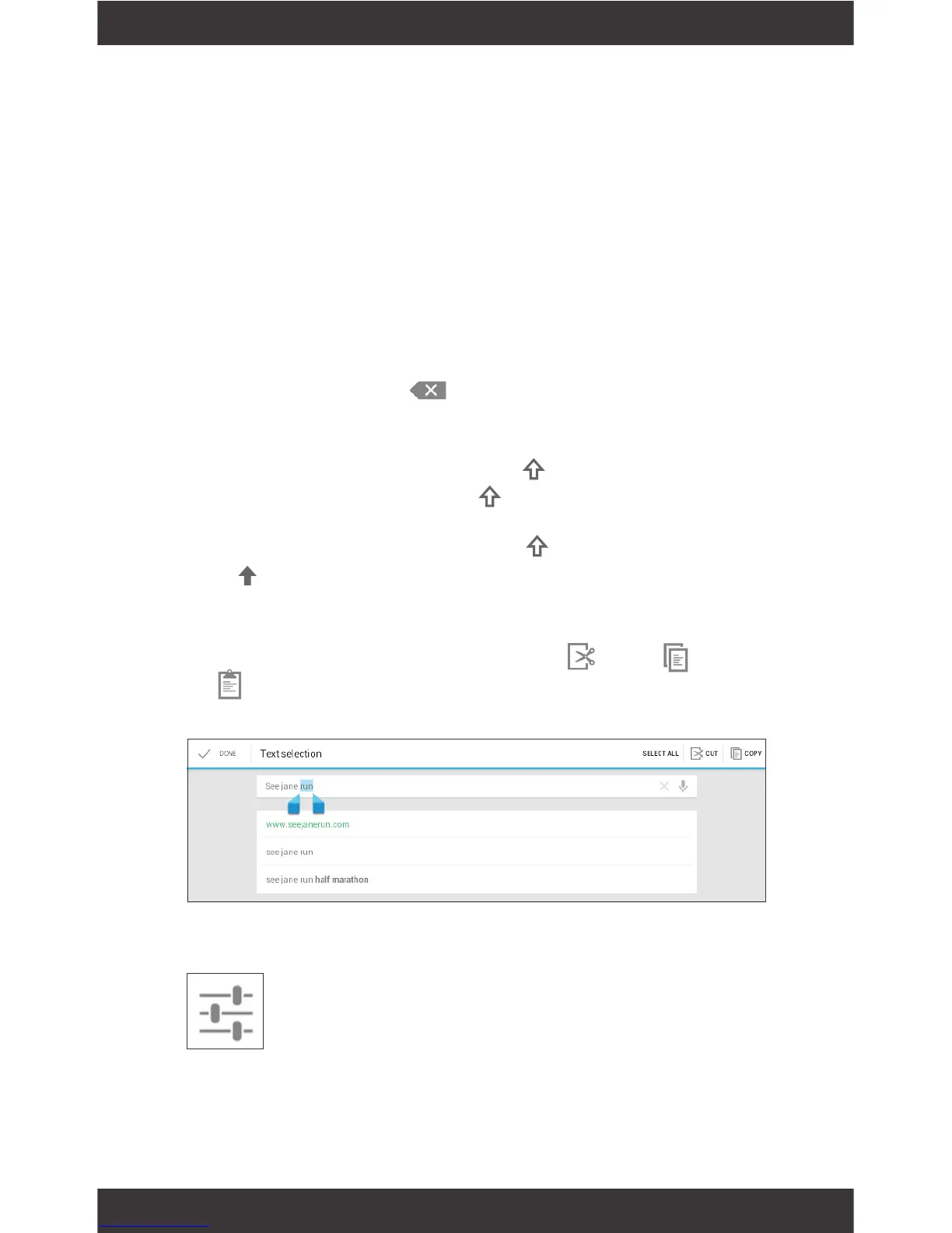 Select text: Touch & hold or double-tap within the