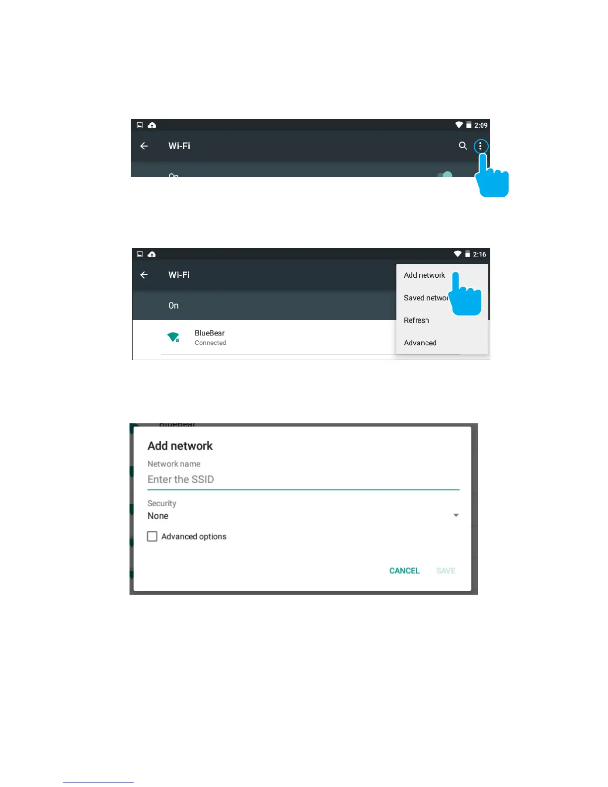 Users may also add a Wi-Fi network by pressing the