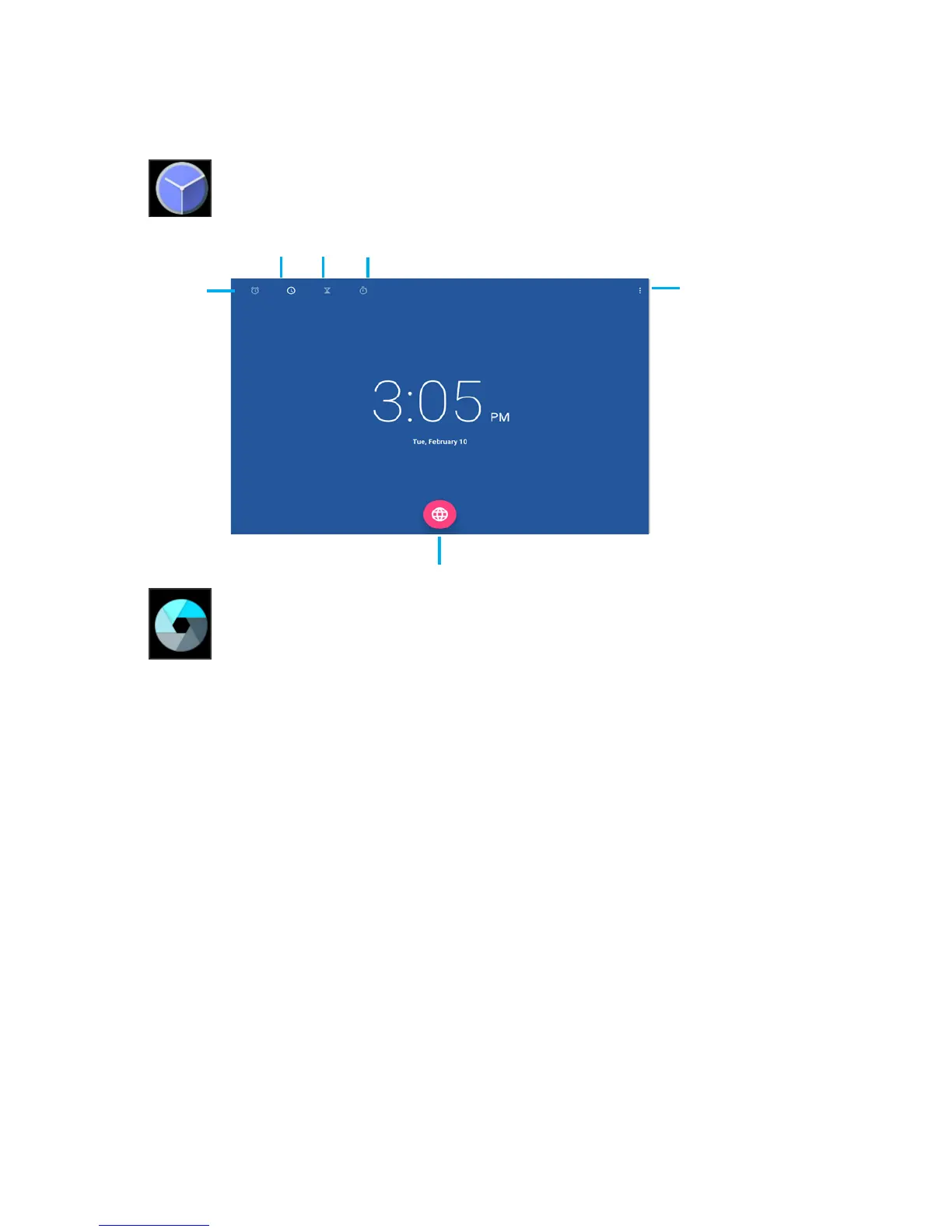 Tap the Clock app to access your alarm clock,
