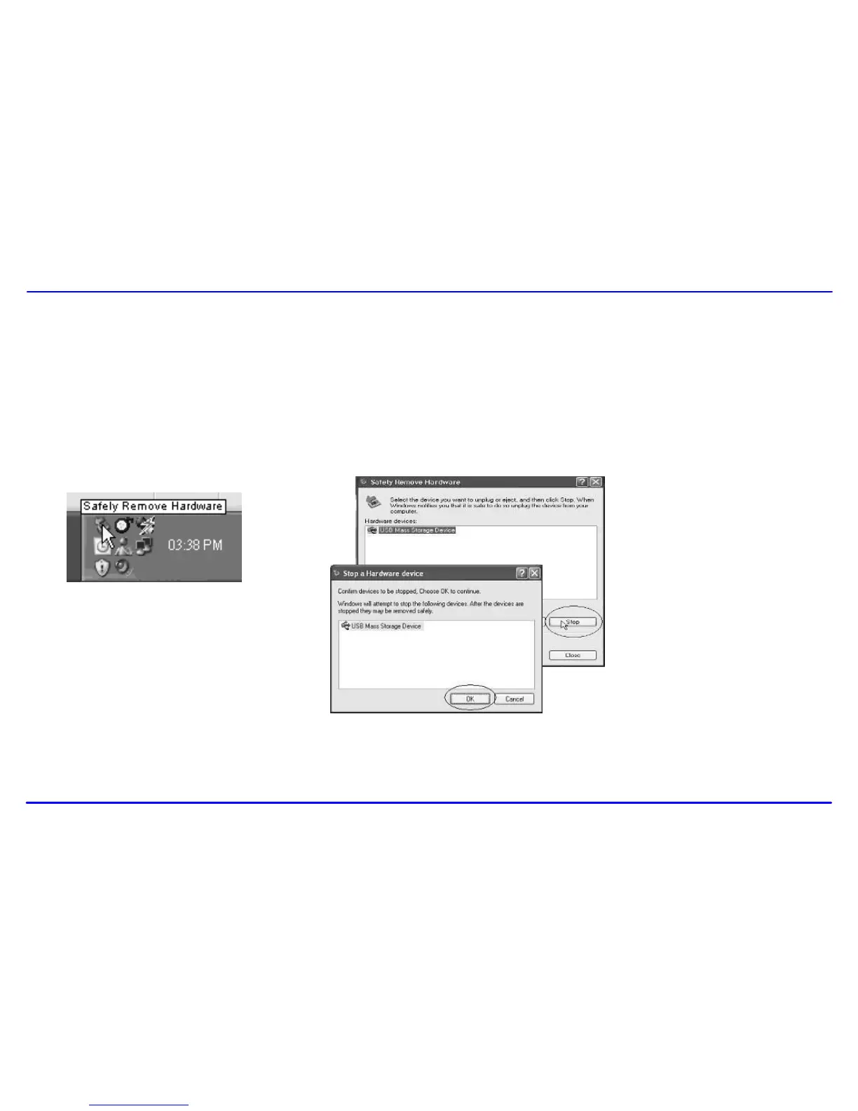 3 When the “Stop a Hardware device” appears, click “OK” to disconnect the USB mass storage device. Then you can unplug the player safely.