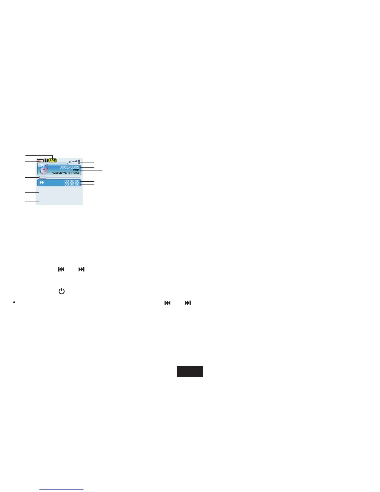 Repeat Mode: set the music repeat mode. Use [V+] or [V-] button to select among: Normal, Repeat one, Folder, Repeat