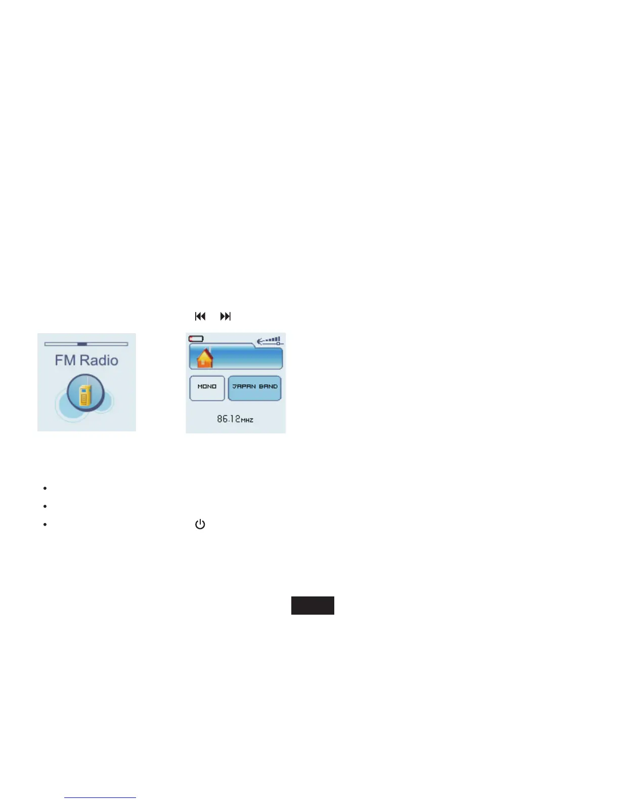 [ M ] button to enter FM radio function menu,and press it again to exit.