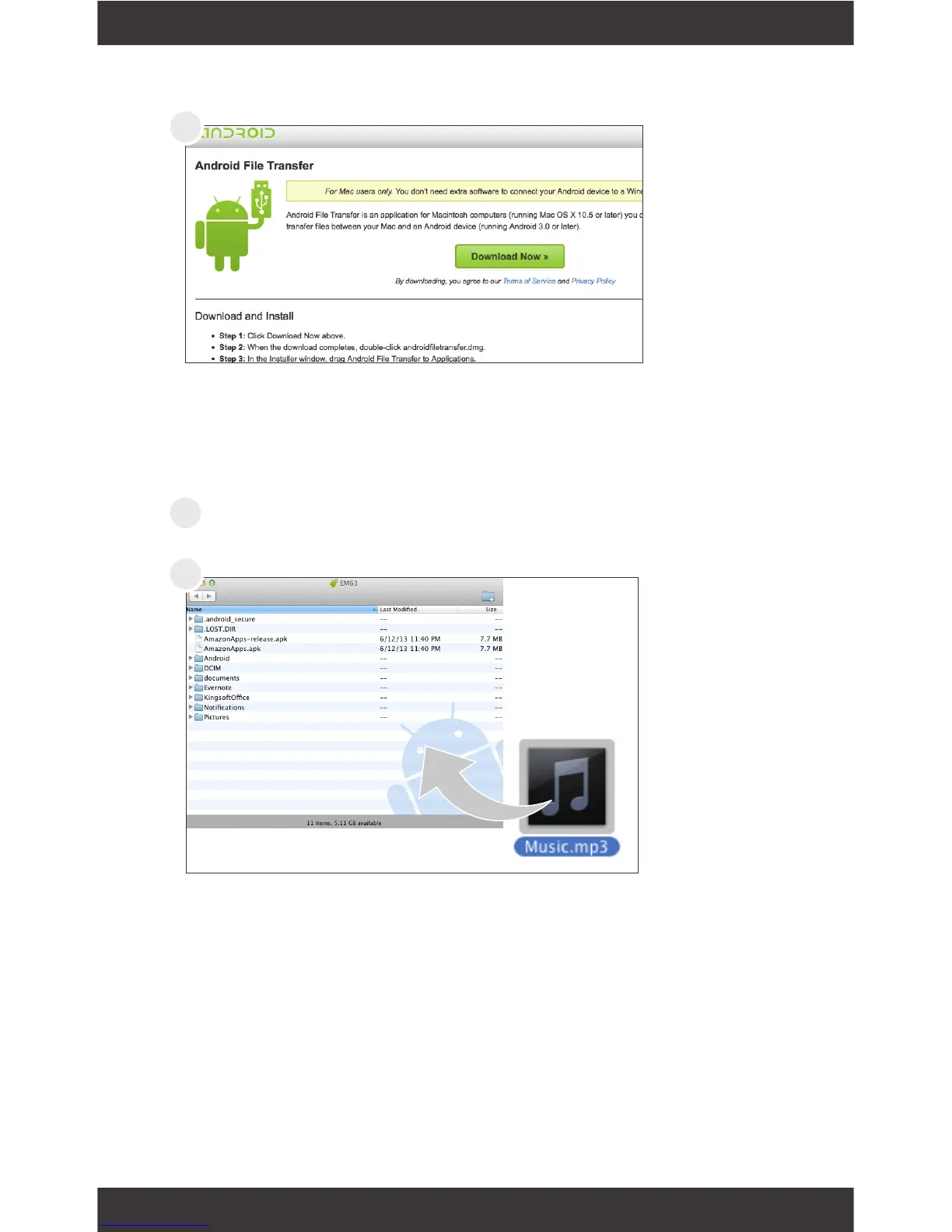 Ematic EM63 - Connecting via USB (Mac); Installing Android File Transfer; File Transfer with Mac