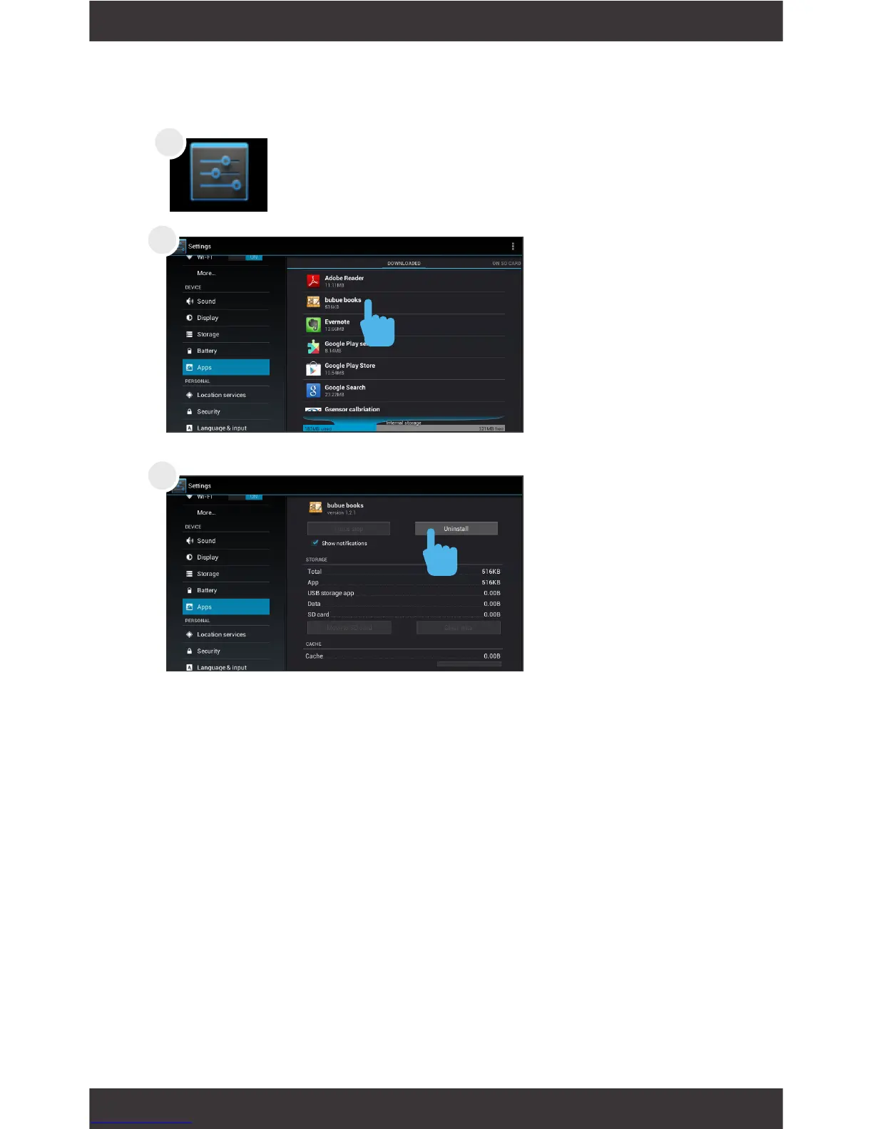 Ematic EM63 - Uninstalling Apps; Steps to Uninstall an App