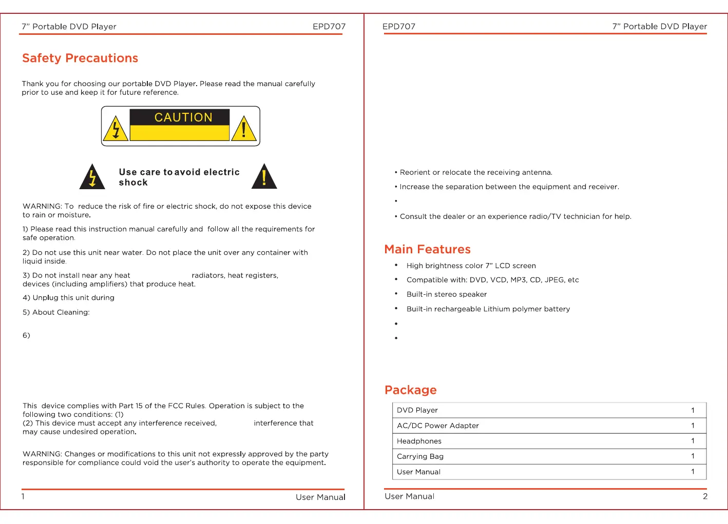 7) Should damage occur to the device, such as damaged power cords or plugs, liquid or