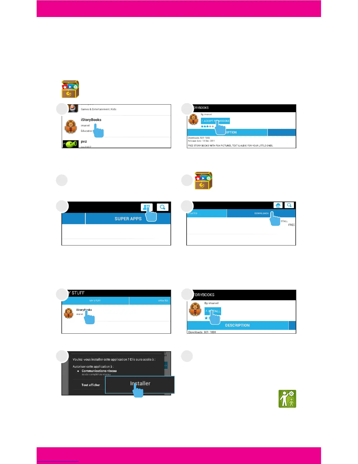 vous devez quitter le mode enfant pour installer l’appli.