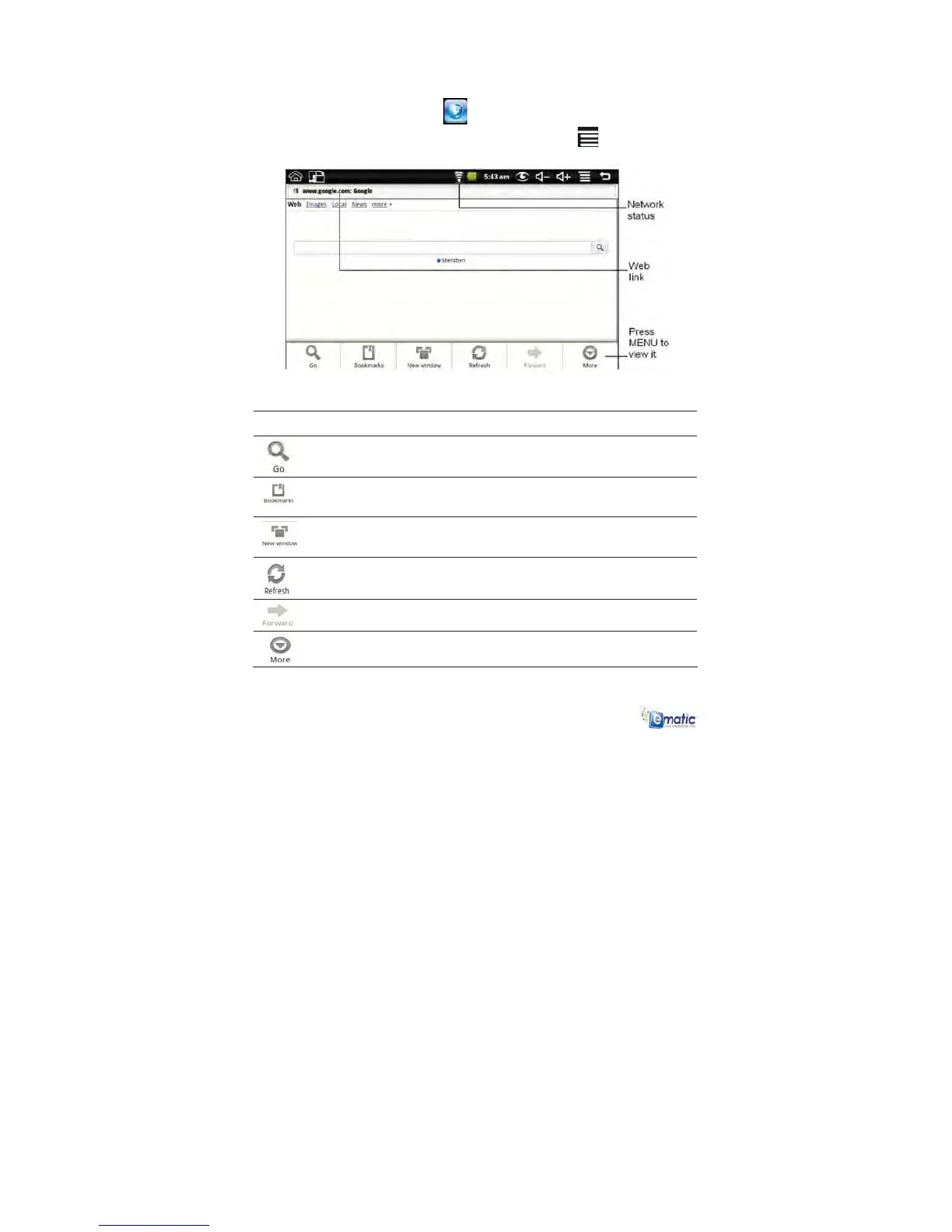 Touch to view additional web functions.