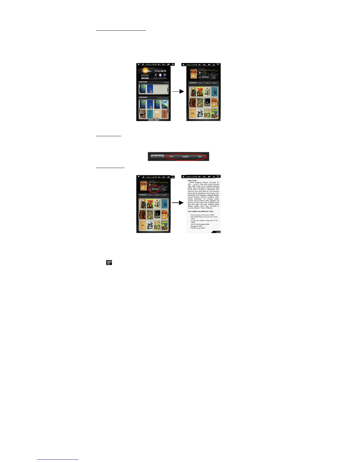 (2) Tap on an eBook, and the book name, author or publication year of the eBook
