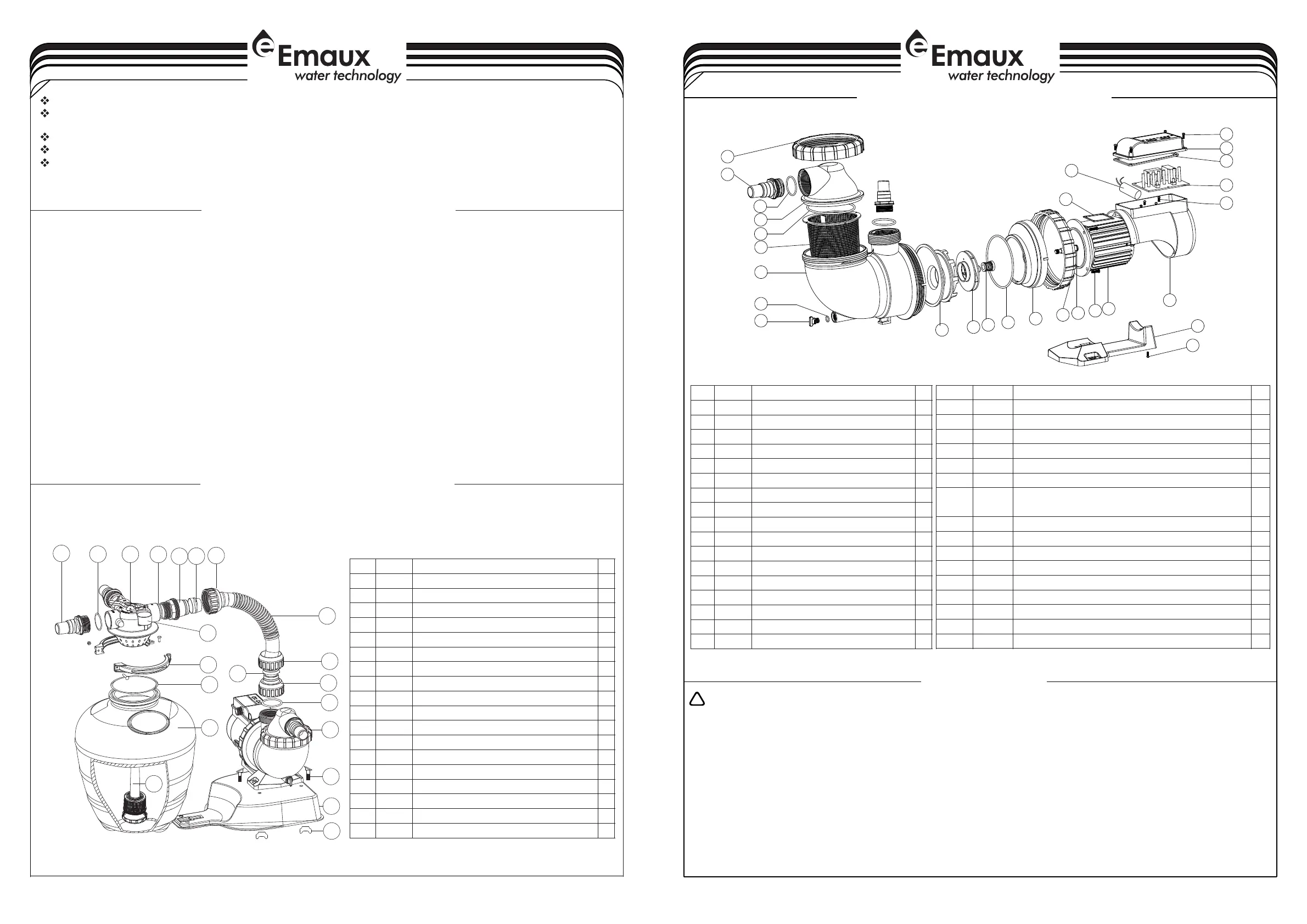 The Emaux pump must be connected to the main power supply by an approved and licensed electrician.