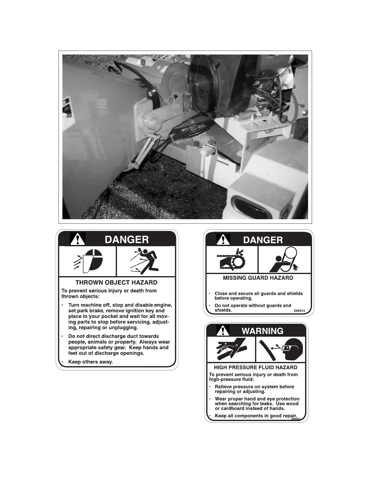 REMEMBER - If safety signs have been damaged, removed, become illegible or parts replaced without