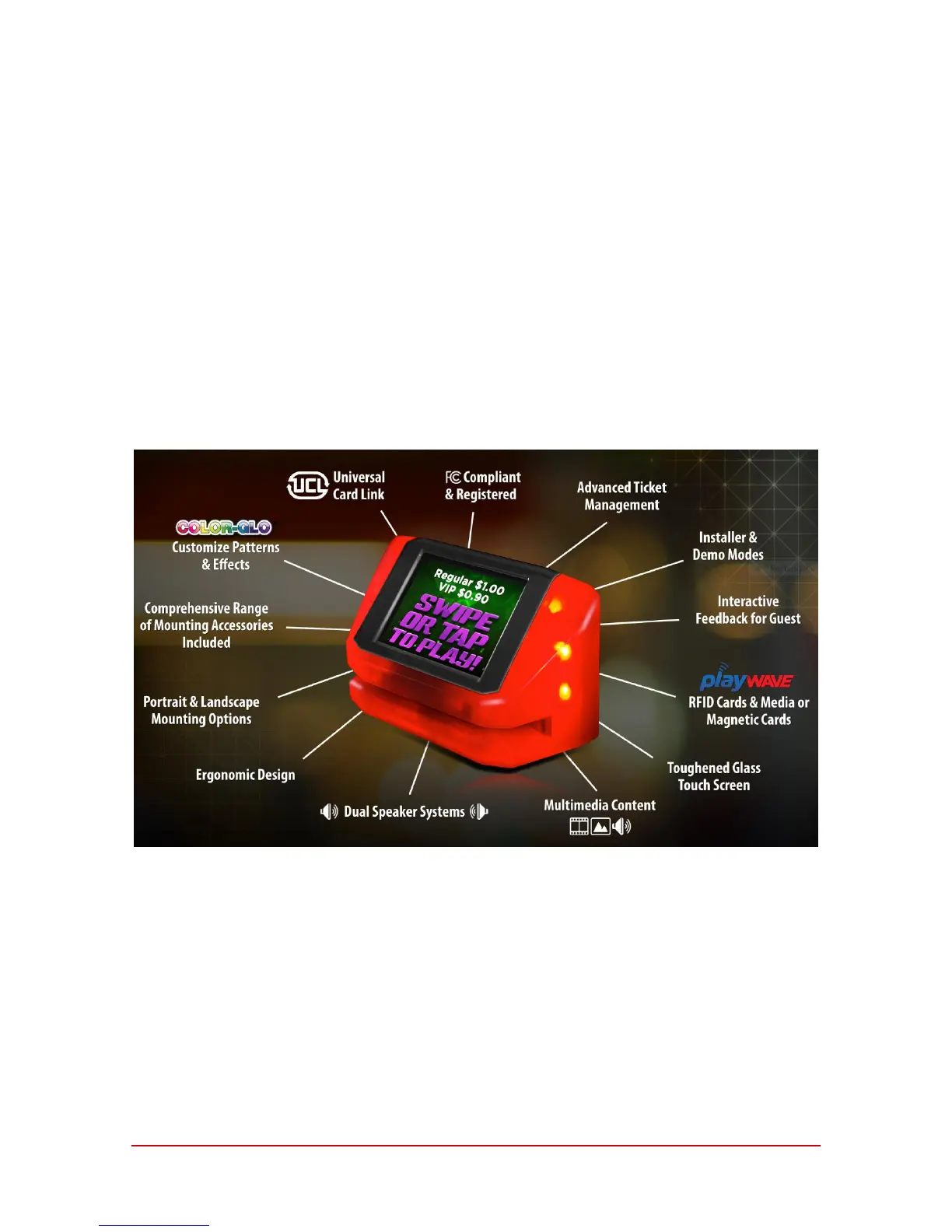The device can be mounted in portrait or landscape orientations to best suite the game and guest