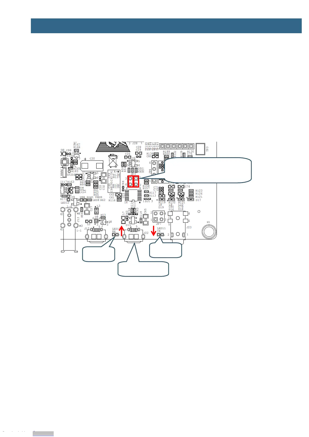 There are two LEDs, transmit from the board (LED11) and receive to the board (LED10), that signal