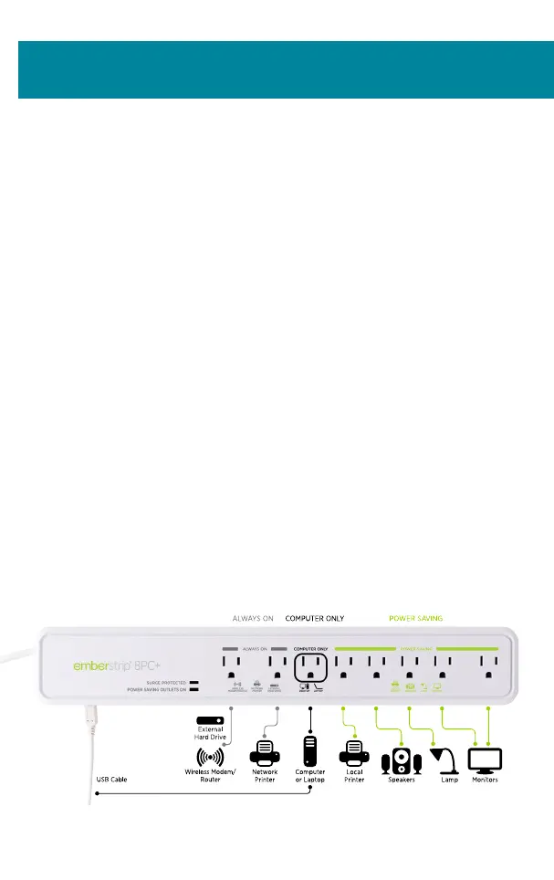 speakers and lamps into the Power Saving outlets on the strip.