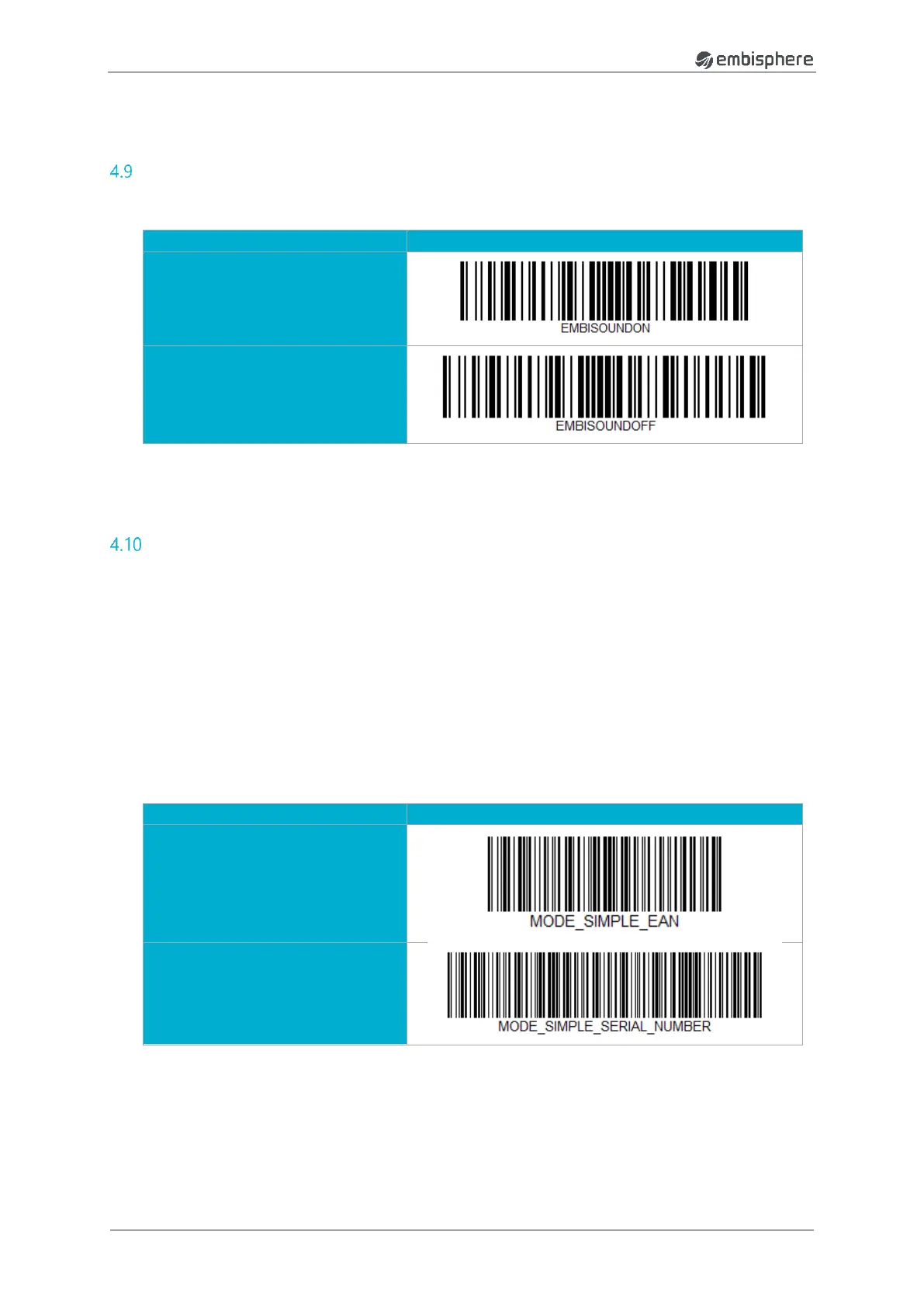The following barcode let you choose to activate or not the sound of the embiScan..