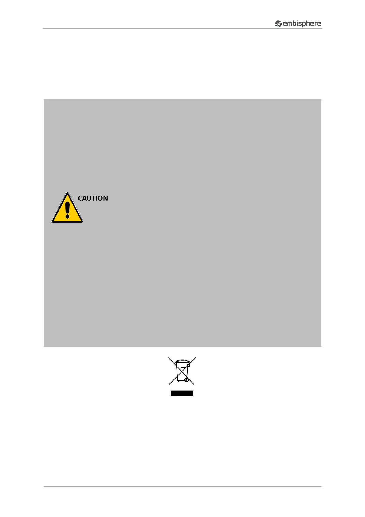 - Keep your EmbiScan and its cable away from water, rain and excessively humid areas.