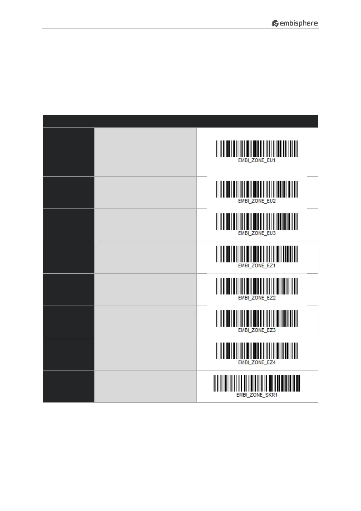 * Barcode must be used following an update of the embiScan firmware