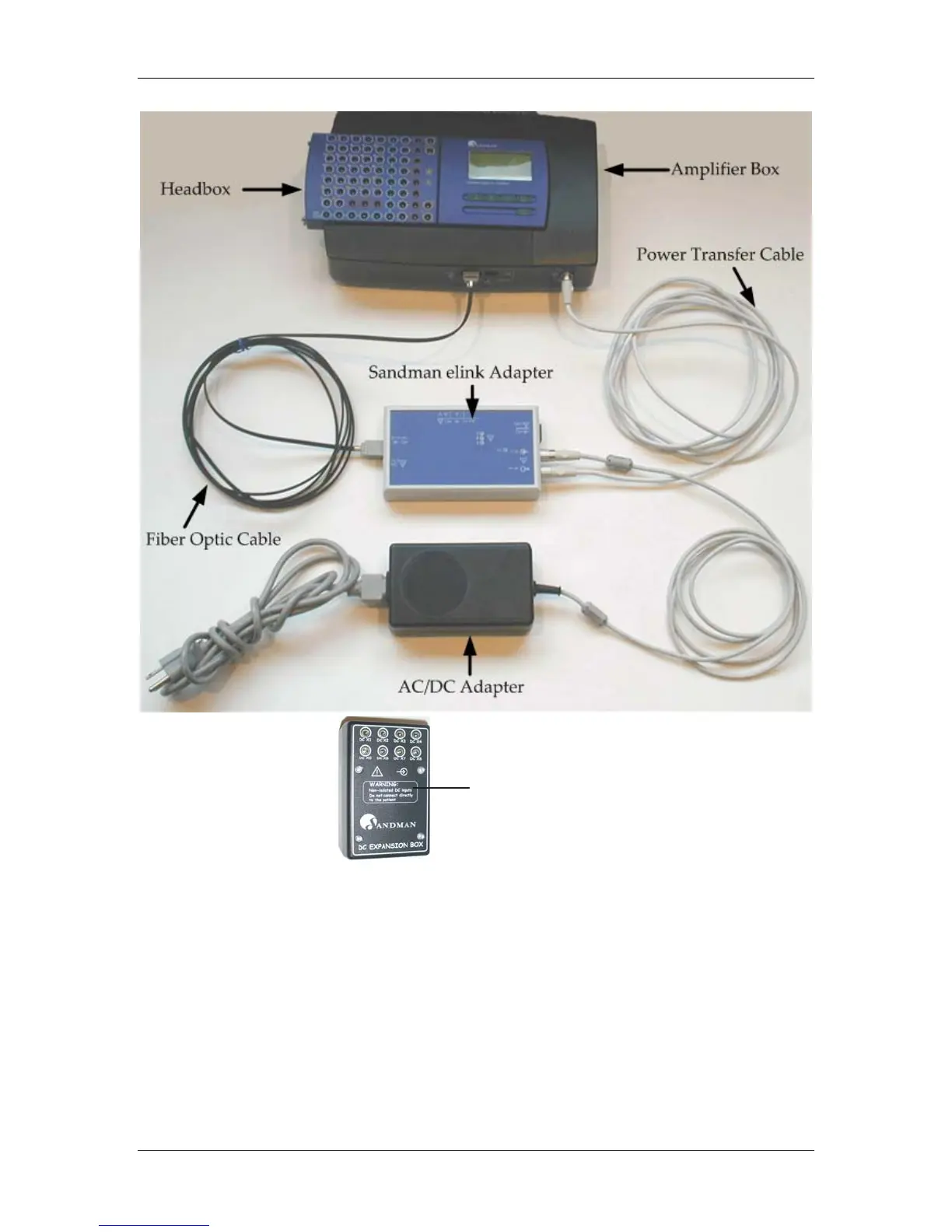 Patient electrodes and sensors plug into the SD32+ amplifier headbox. There are 68 input sockets
