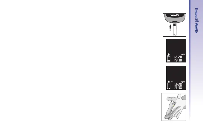 con la zona de reacción de la muestra de sangre hacia arriba. Asegúrese