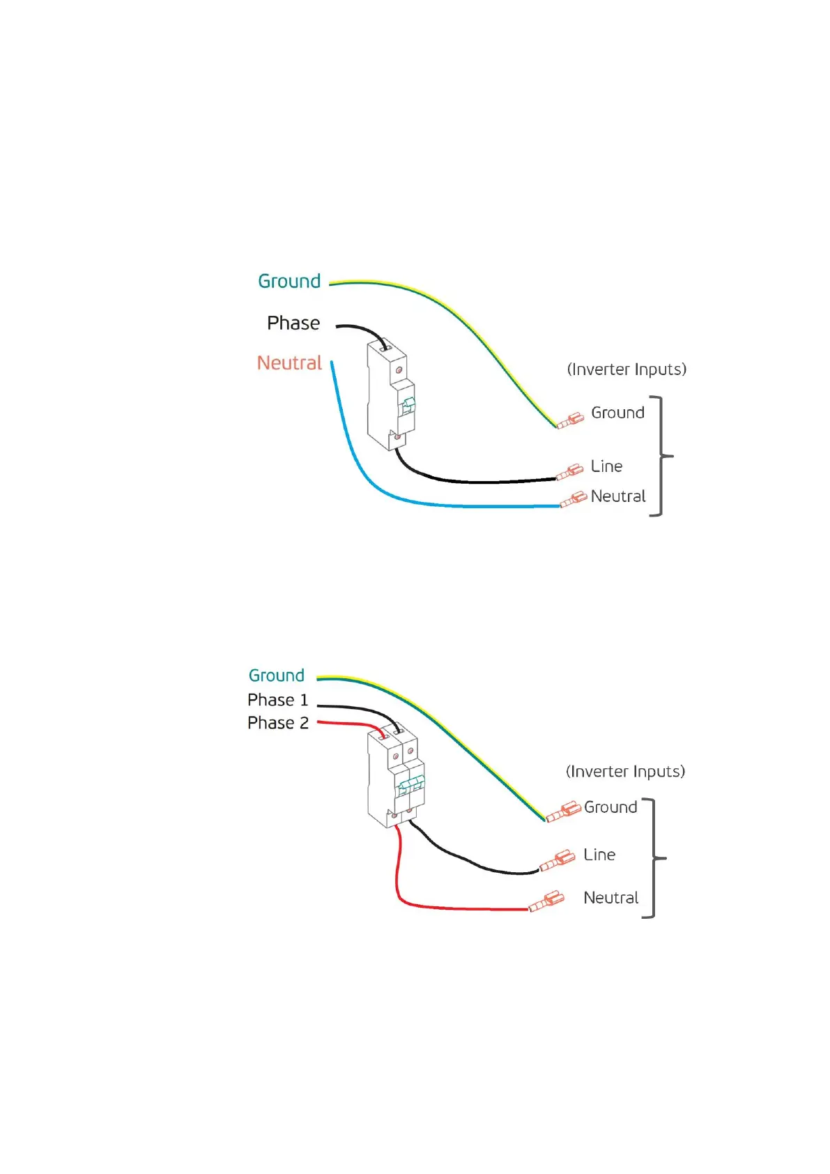breaker. Furthermore, the line phase wire must be connected to the phase input