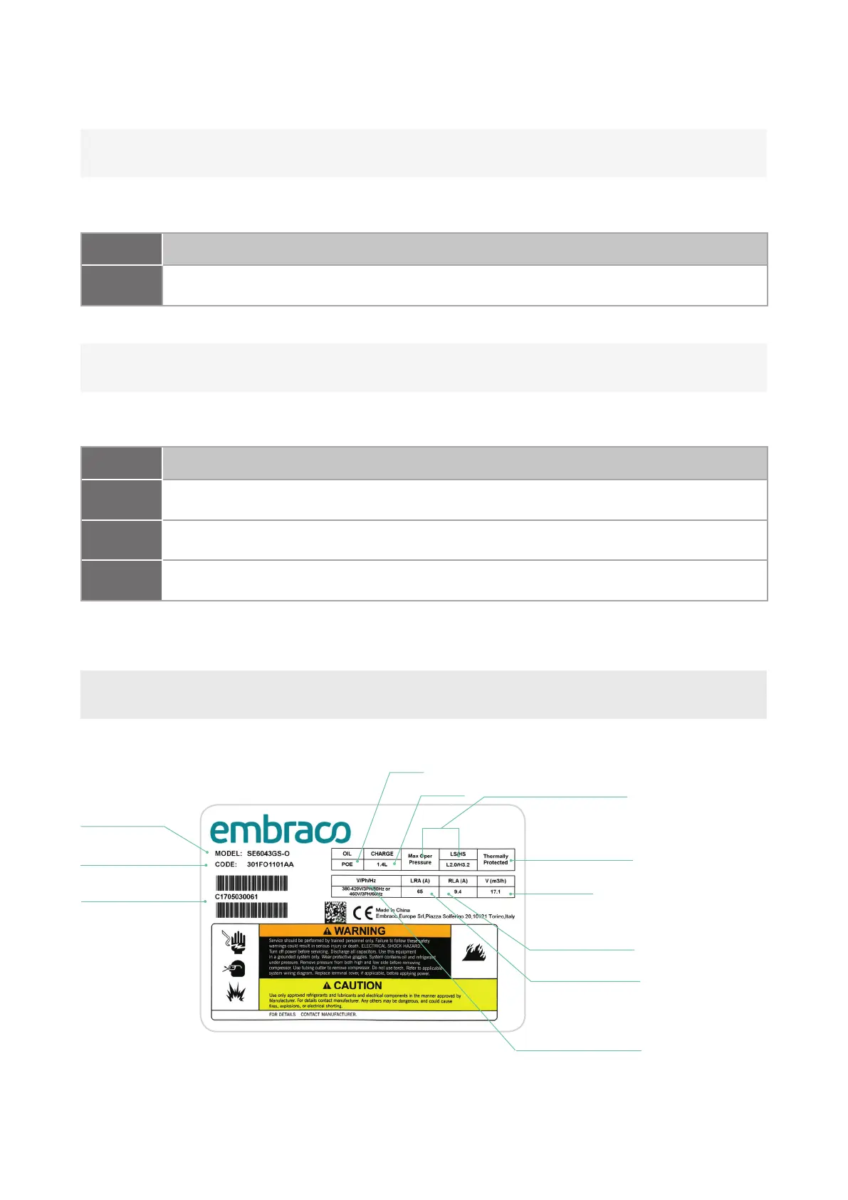 Embraco Scroll SE2014GS-O - Compressor Label