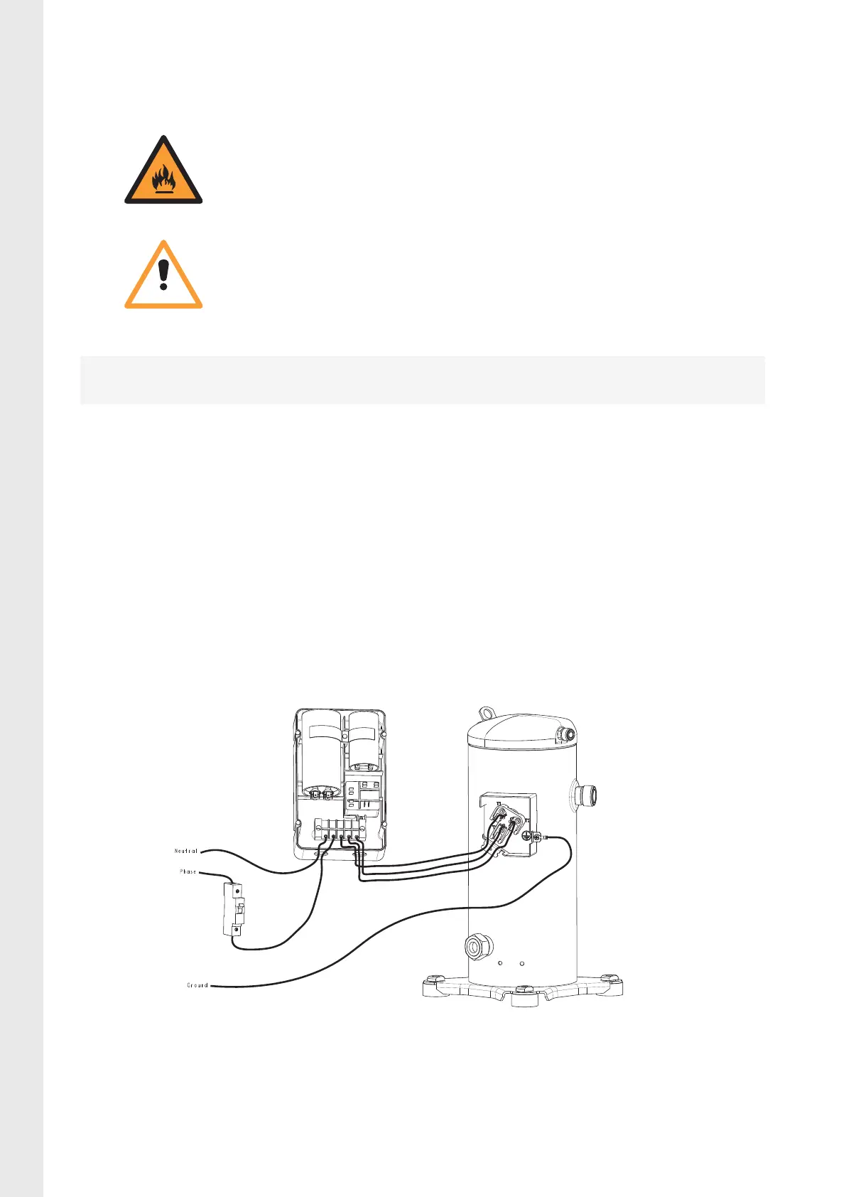 Always follow connection diagram scheme in order to assure motor-compressor safety and correct operation.