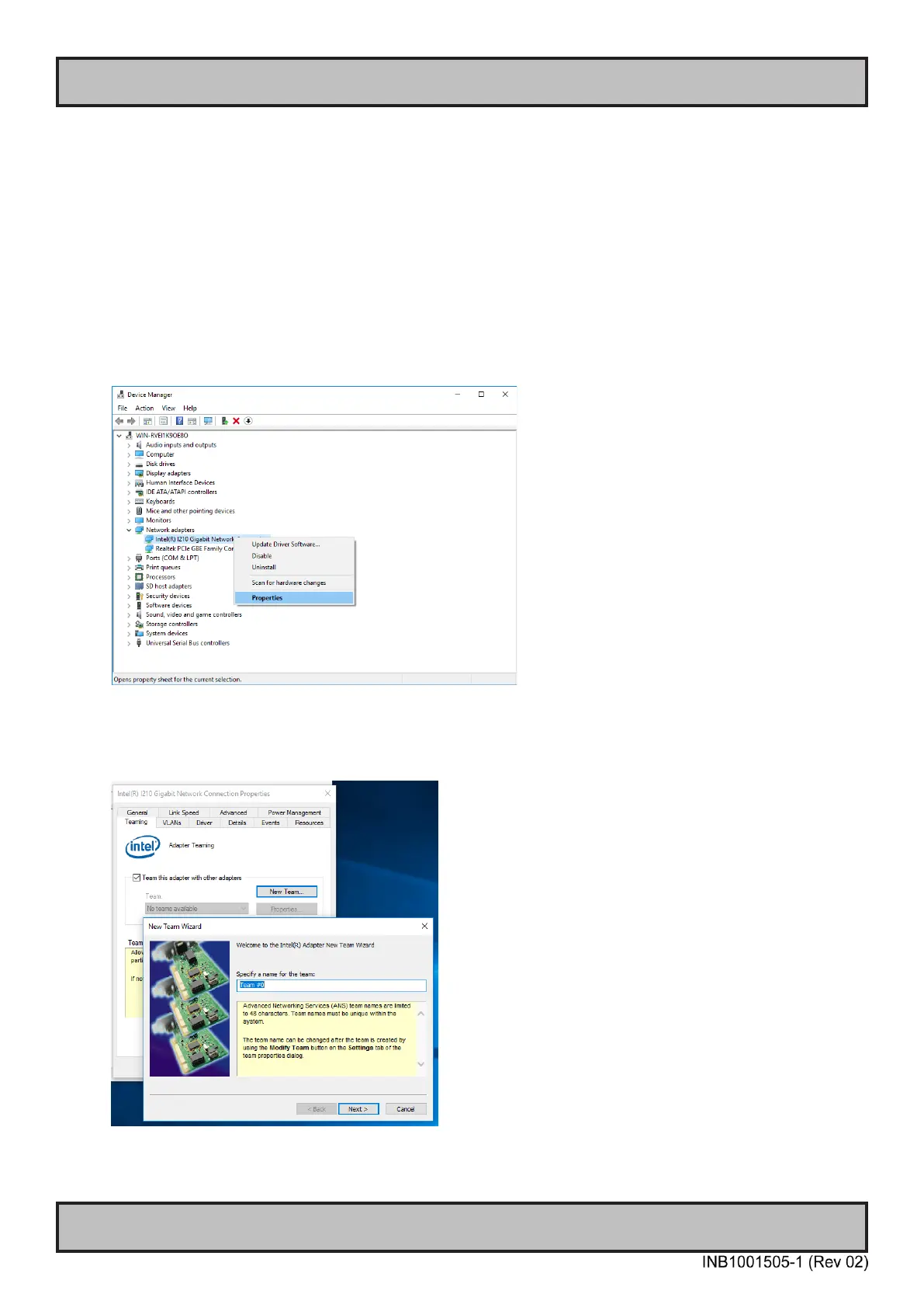 - If Teaming tab is not shown, you need to update Intel network driver/software.