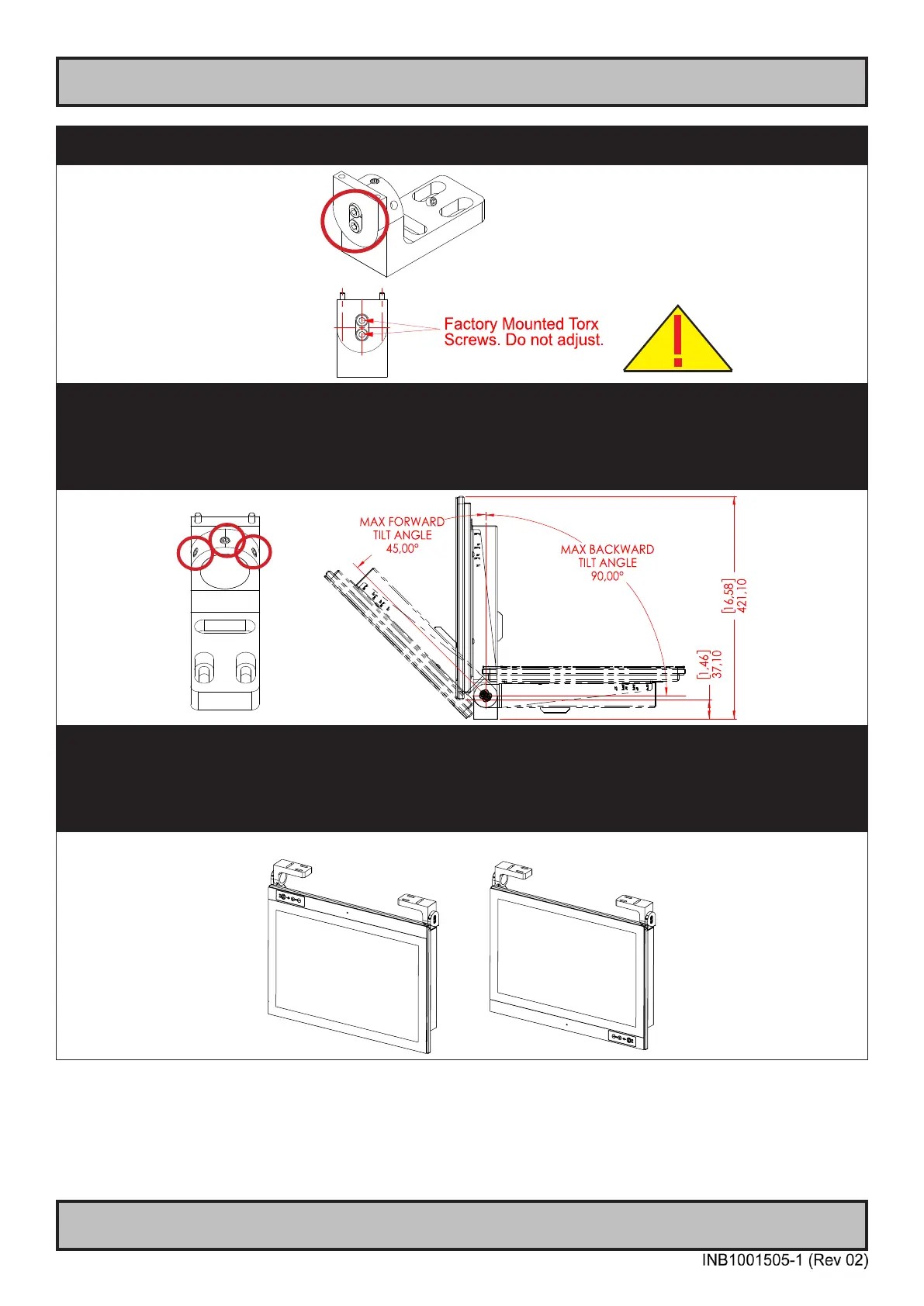 Top Screws on both brackets, adjust unit into new tilting angle, and fasten the Set Top Screws again. Veriy that the unit does