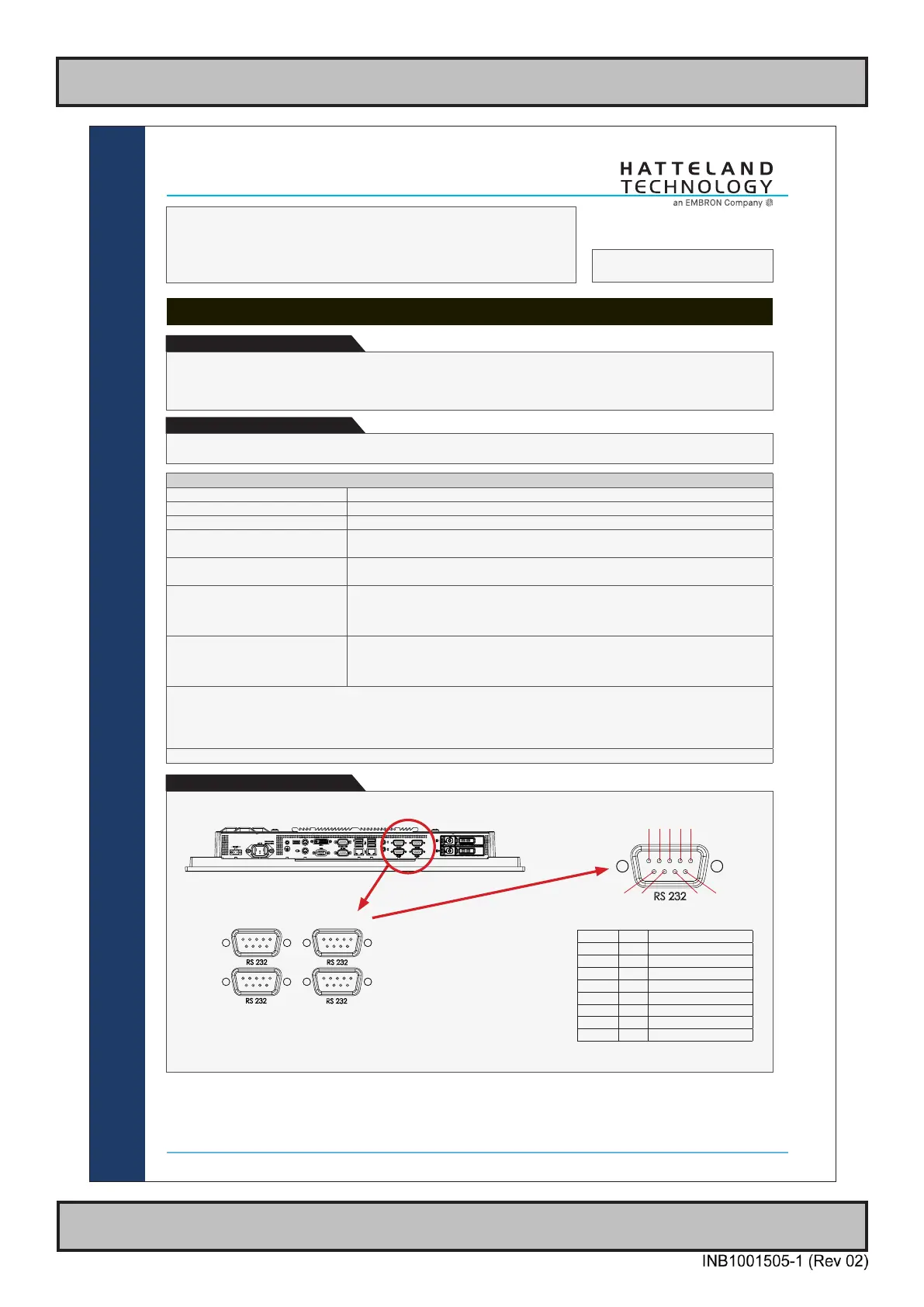 • Connector Standard RS-232 DB-9 male housing and pinning