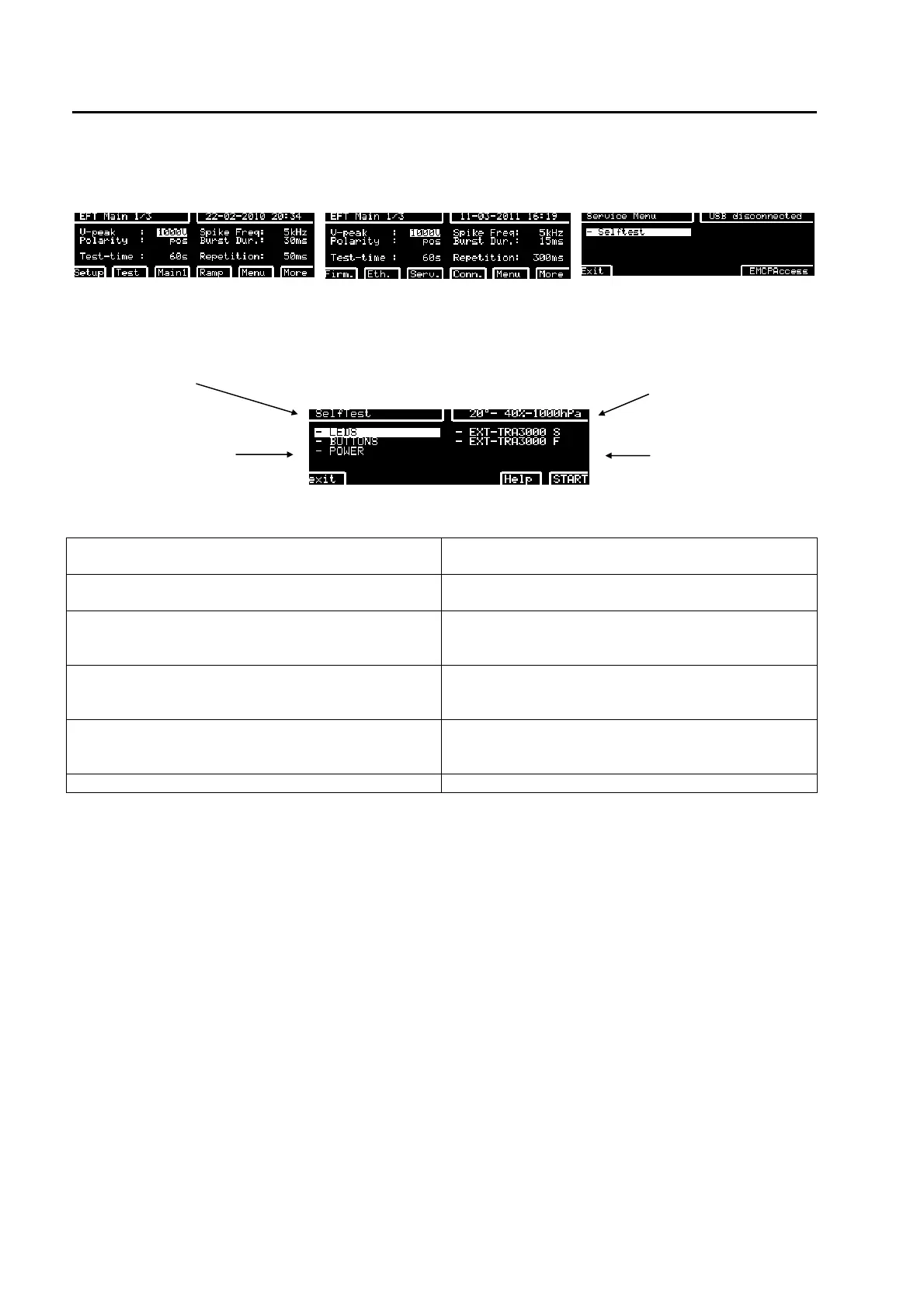 After pressing „ENTER“ the different self tests can be activated.