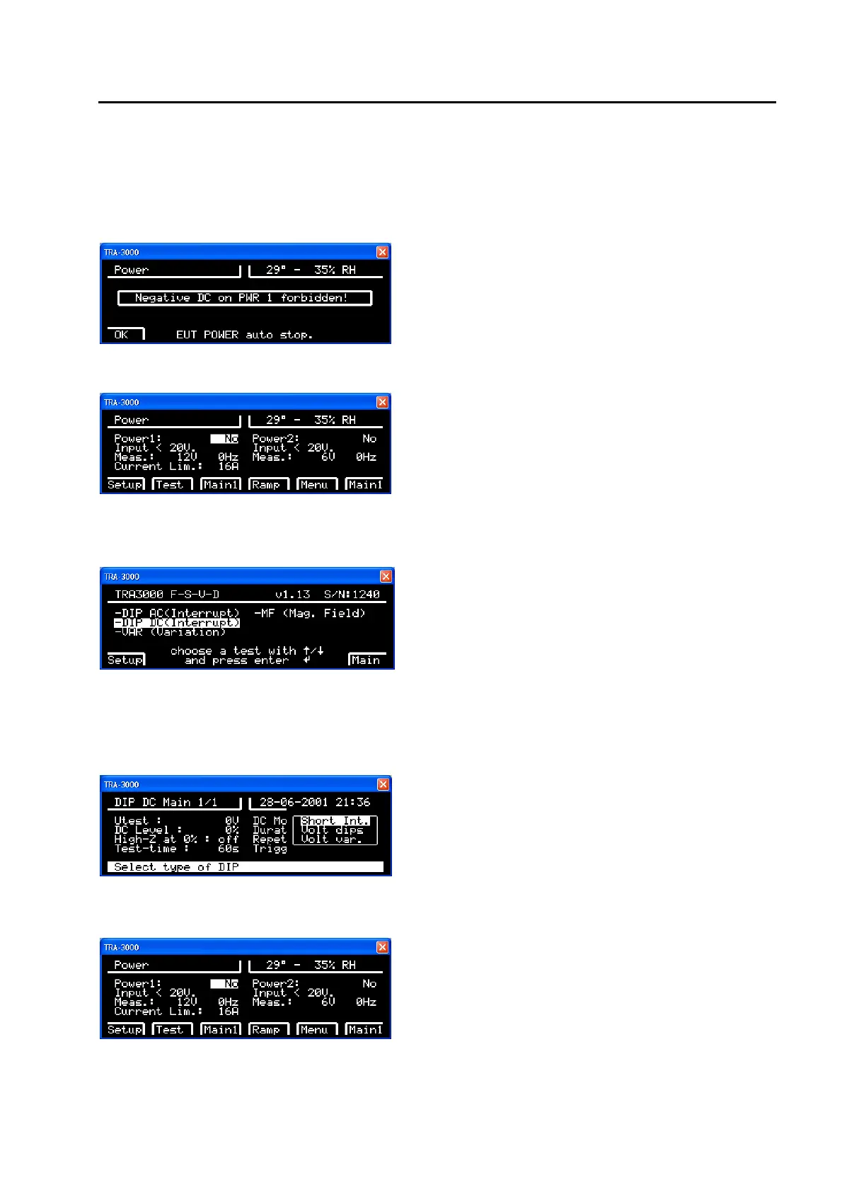 No DIP DC (Interrupt) will be visible in the display. The d.c. supply of the EUT can be turned ON/OFF with