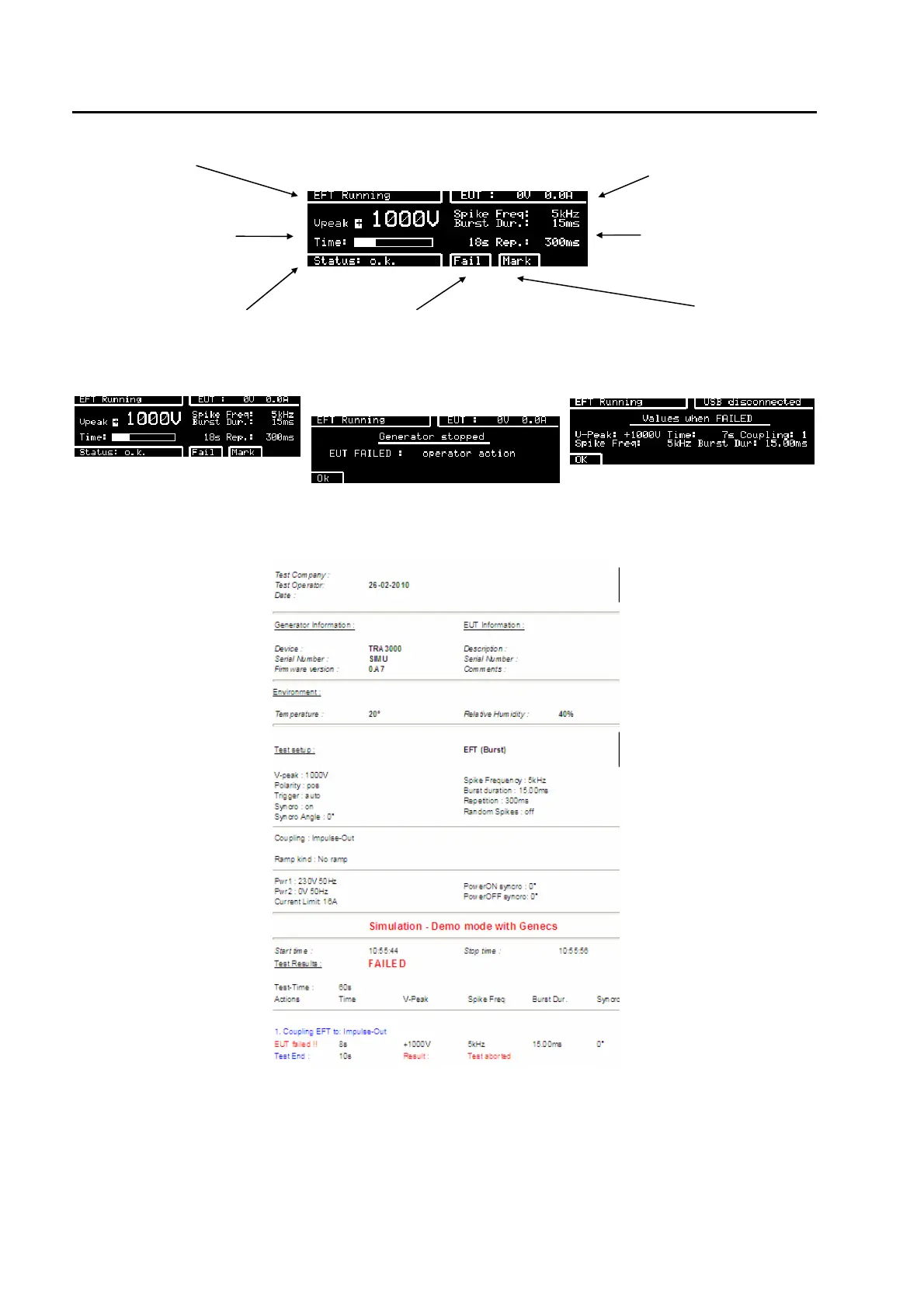 test in operation EUT power v, i ++++
