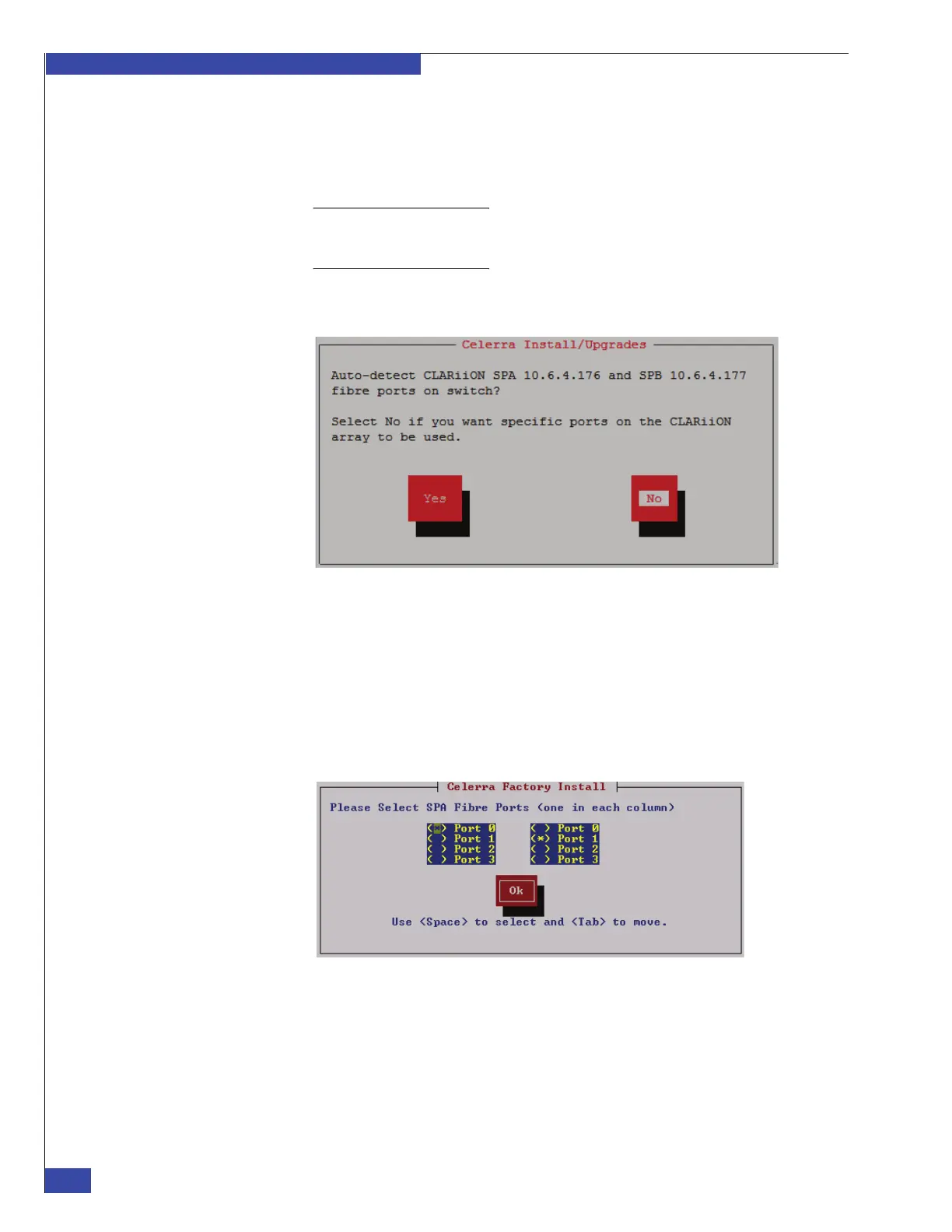 b. To manually select which FC switch ports the VNX array will use, tab to No