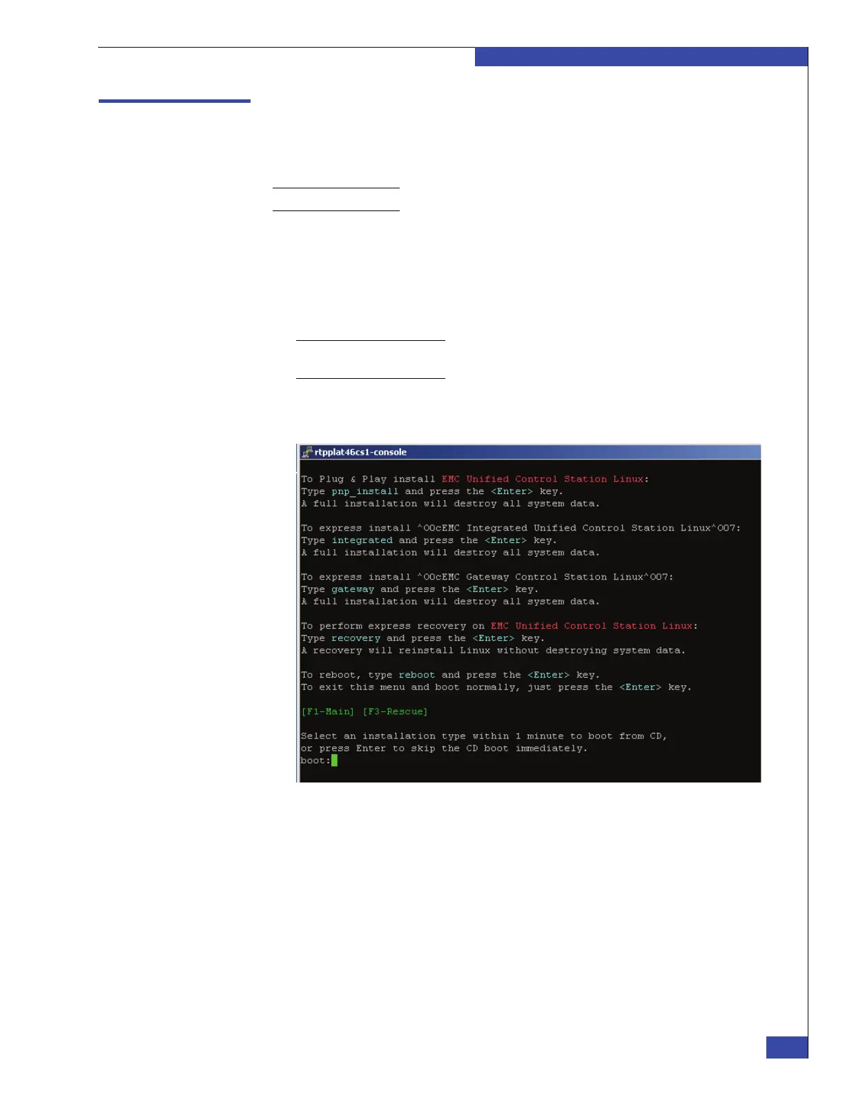 1. Insert the EMCNAS installation media into the Control Station, press the power