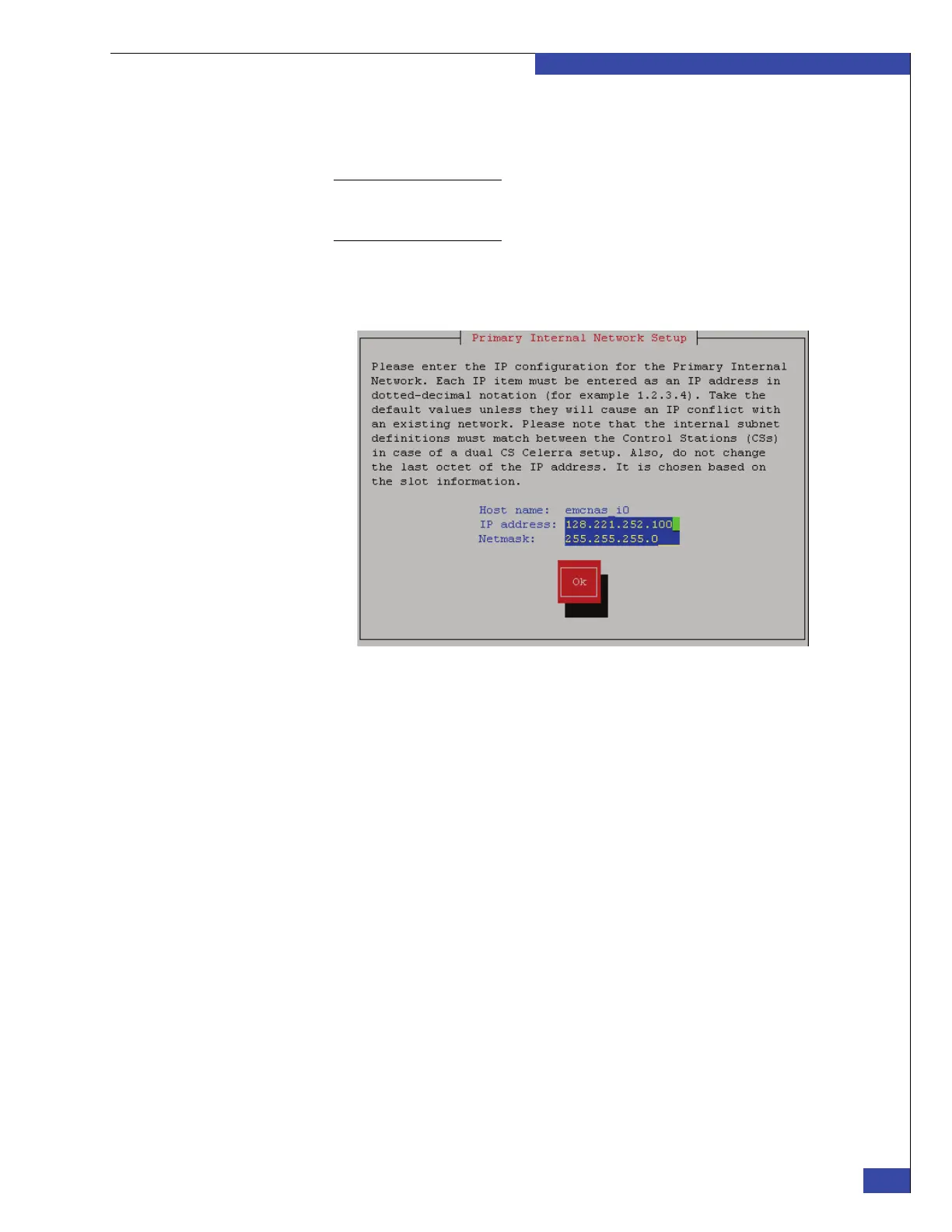 a. In the Primary Internal Network Setup dialog box, enter the IP address and
