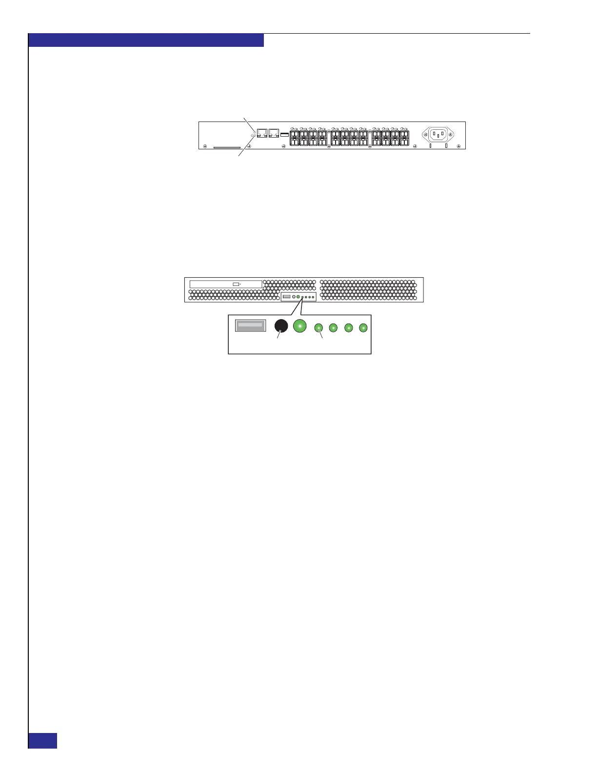 c. Verify that the Power and Status LEDs (shown in Figure 18) on both Fibre