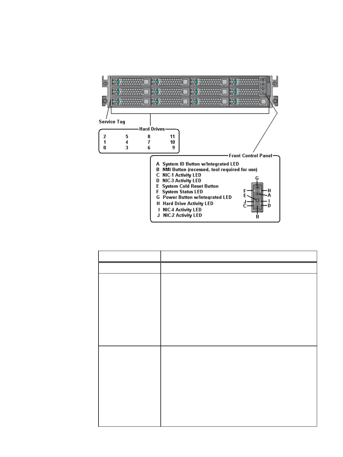 Table 7 M600, M1200, M2400, and Avamar Business Edition (S2400) node front panel