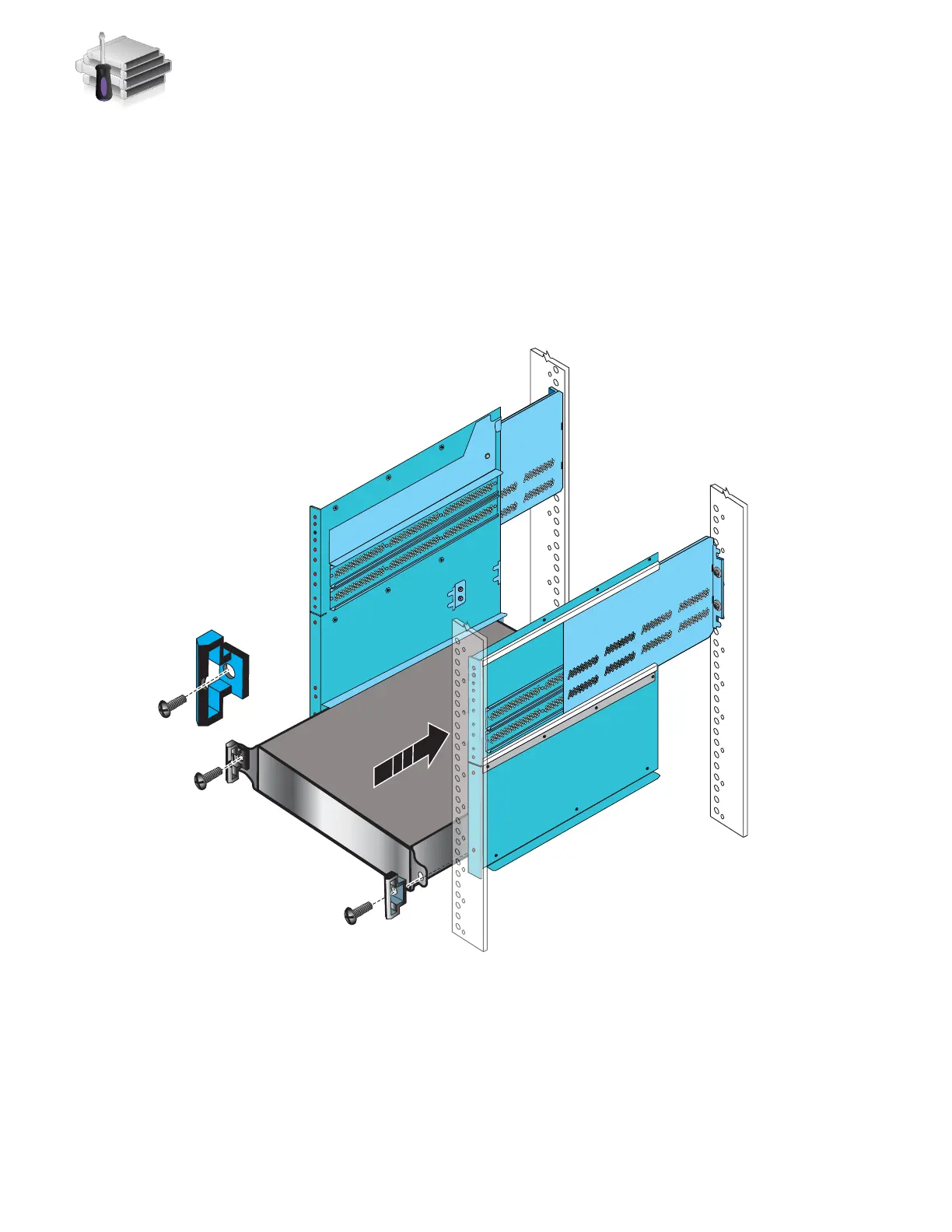 Ensure that the enclosure is fully in the cabinet. The rail stops in the back will seat into the