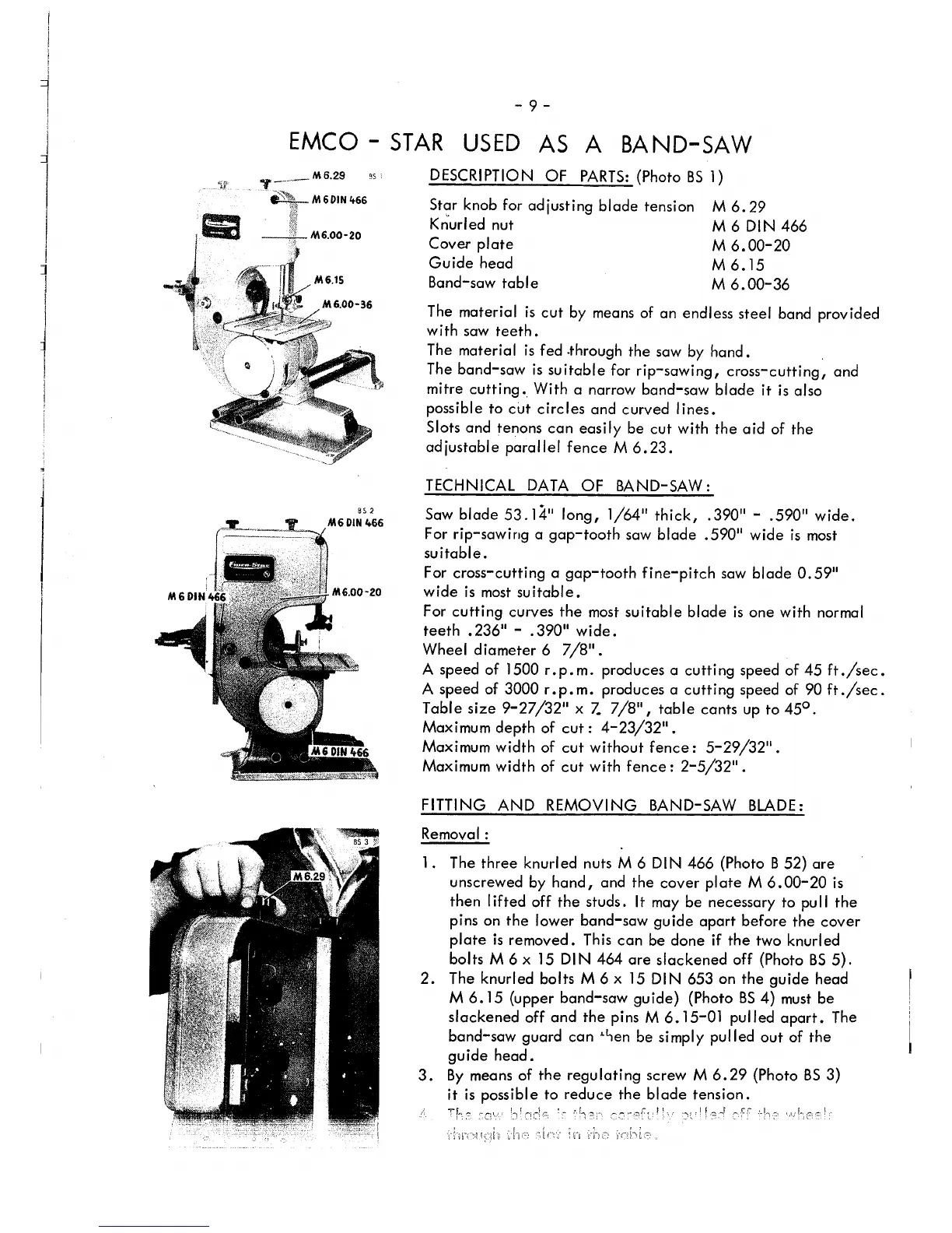Emco rex - Using the Band Saw Attachment; Band Saw Blade Fitting and Tensioning